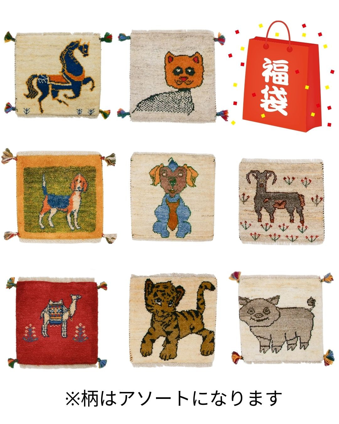 約40cm x 40cm のギャッベ福袋をご用意しました!