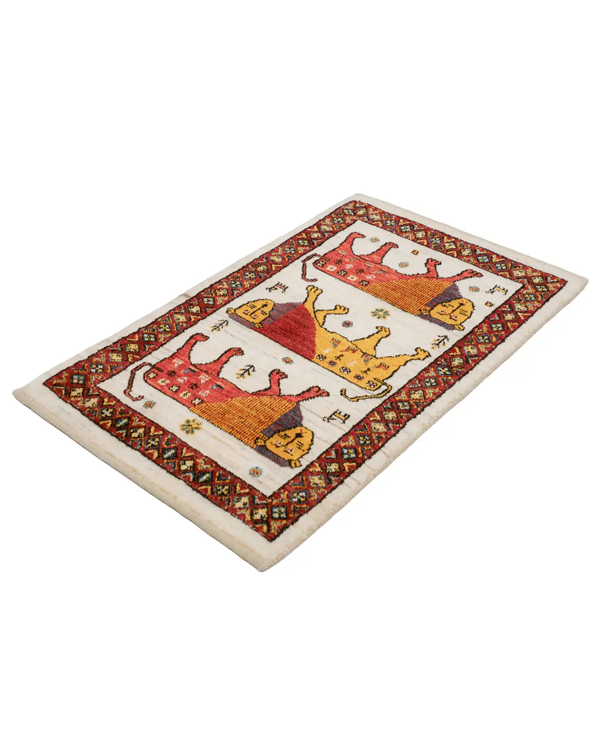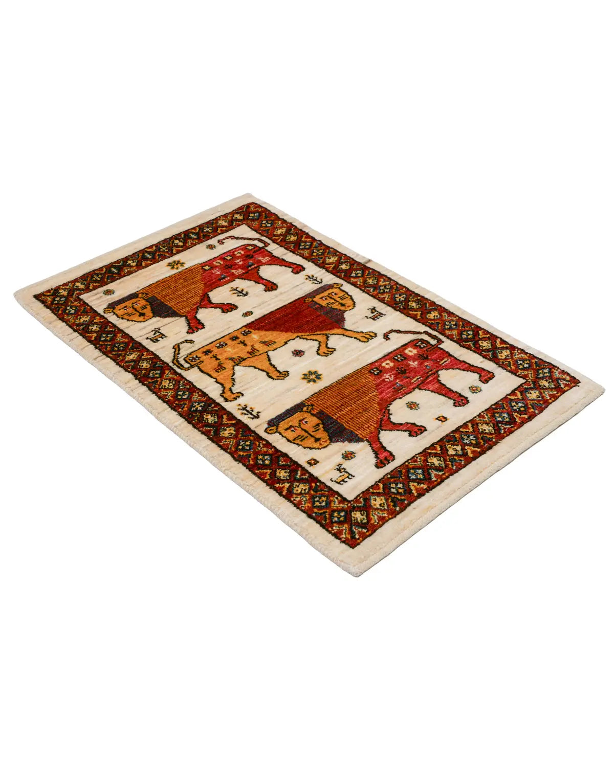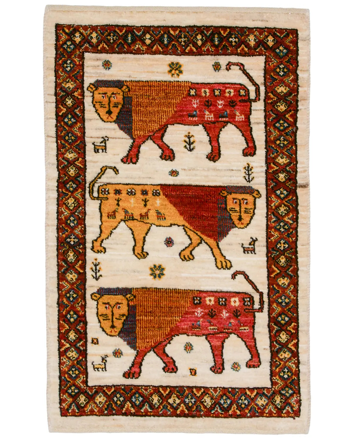 シーラーズ産の手織りライオンギャッベです。