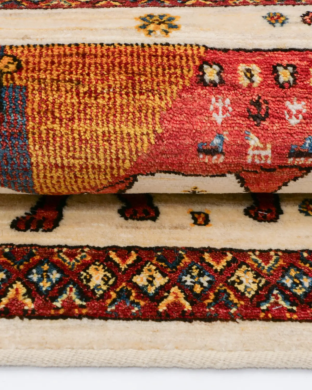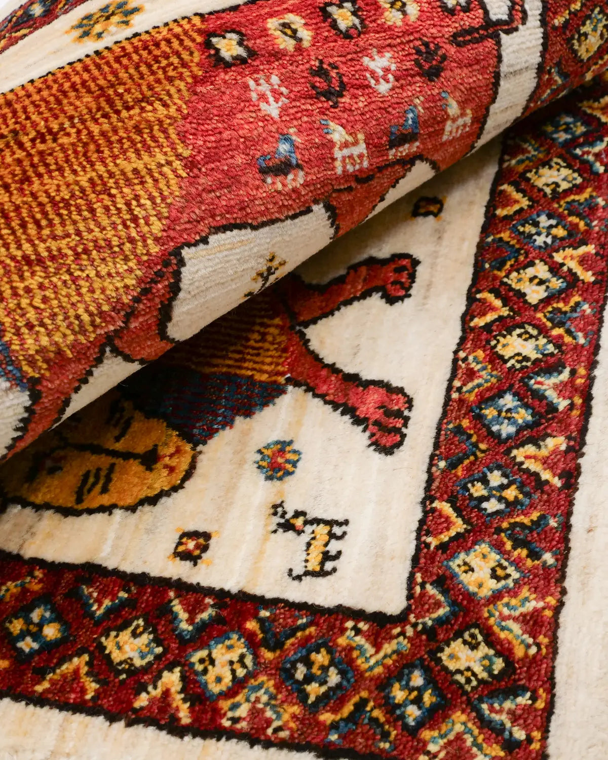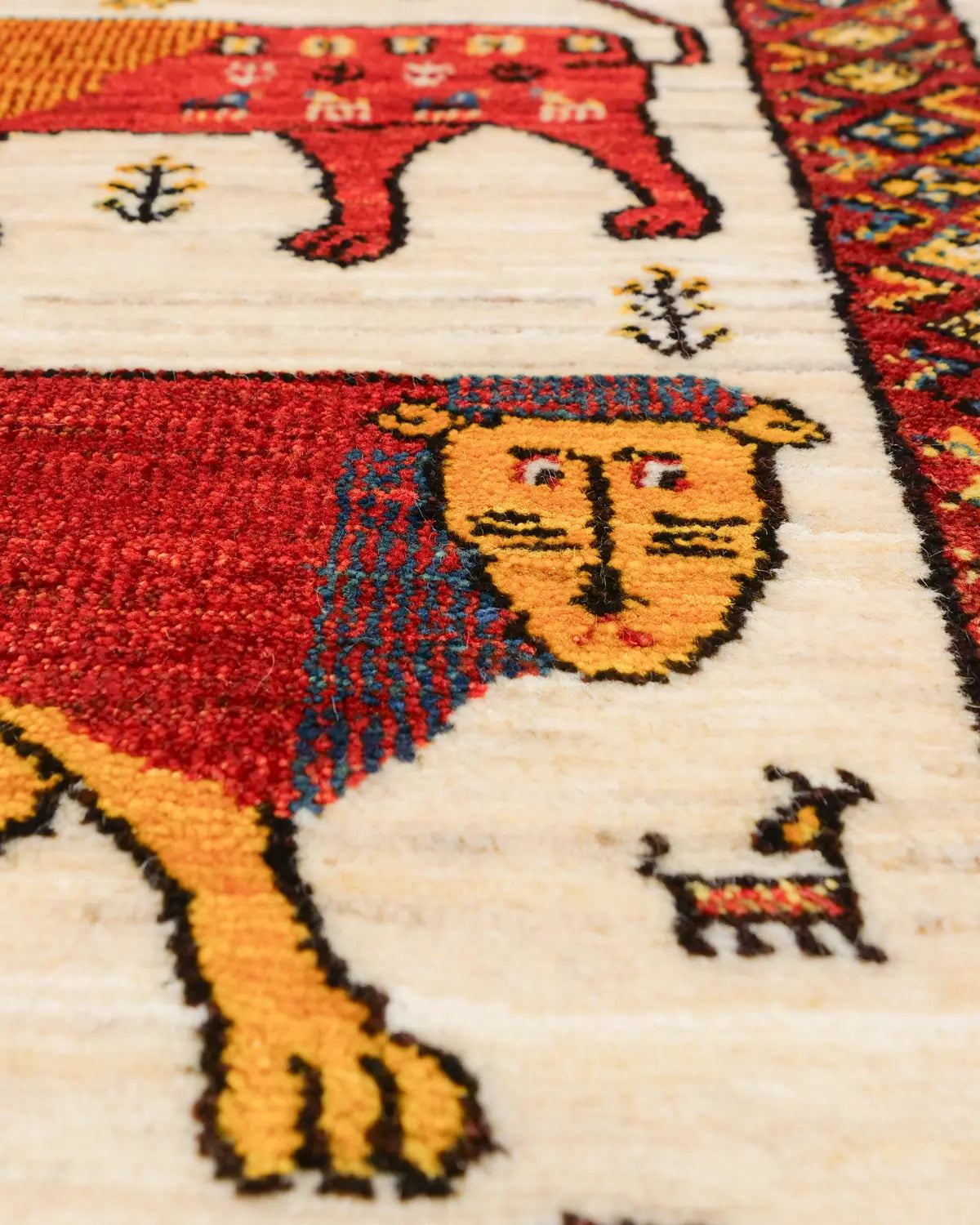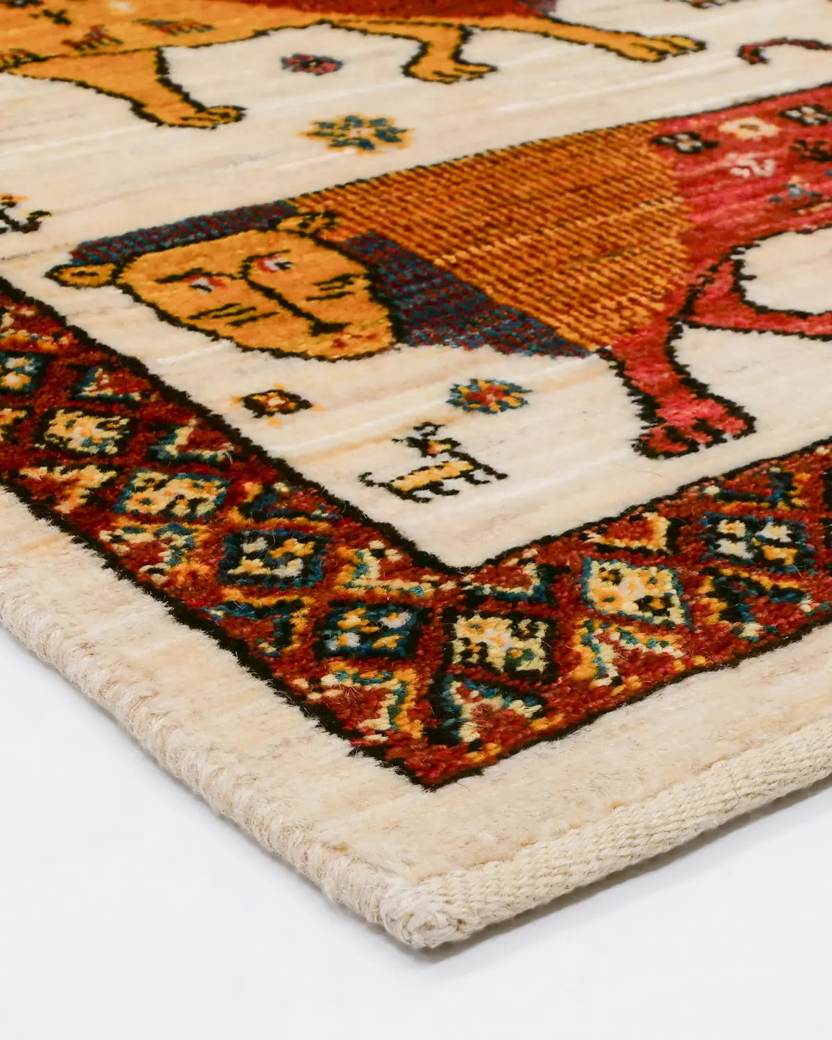 シーラーズ産の手織りライオンギャッベです。