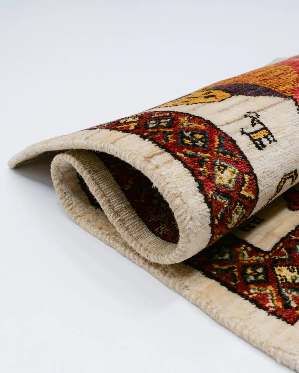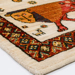 ライオンギャッベは、イラン南西部の遊牧民(カシュガイ族)が織る絨毯で、ライオンをモチーフにした個性的なデザインが特徴です。ライオンは「力強さ」や「知恵」の象徴として古くから取り入れられてきました。