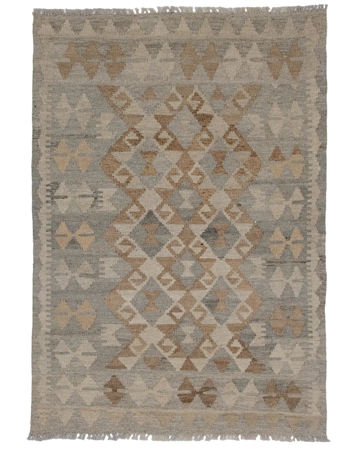 アフガニスタンで織られた、天然素材の風合いをそのまま活かした手織りナチュラルキリムです。染料を一切使用せず、羊毛そのものが持つ自然な色合い。