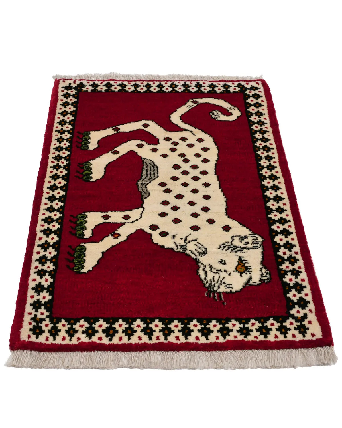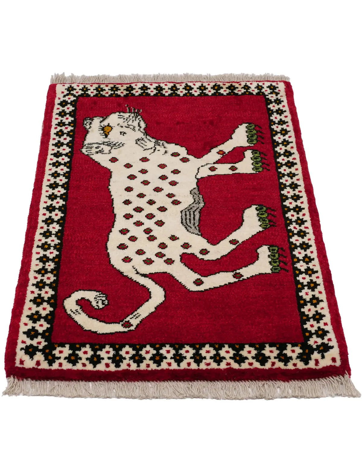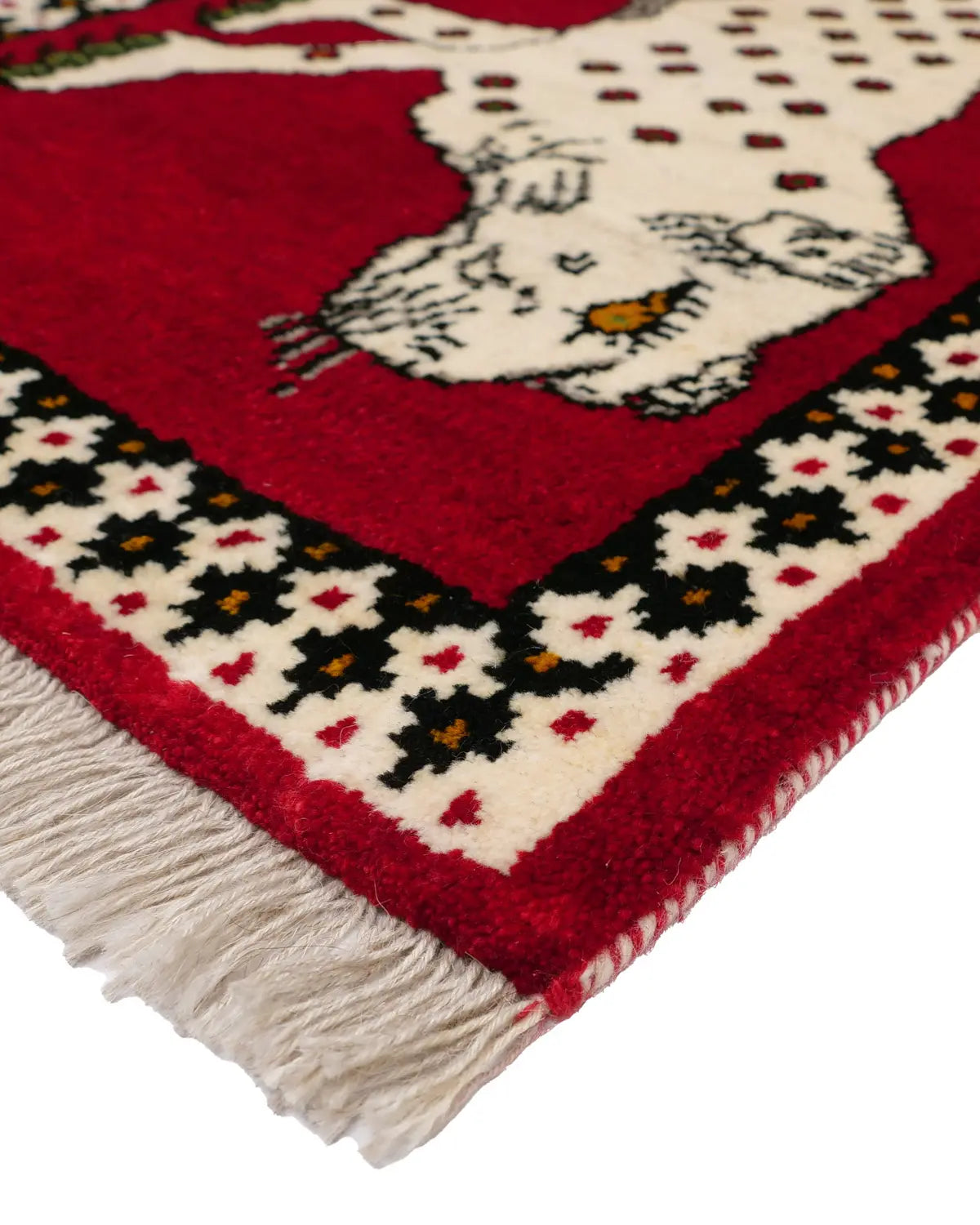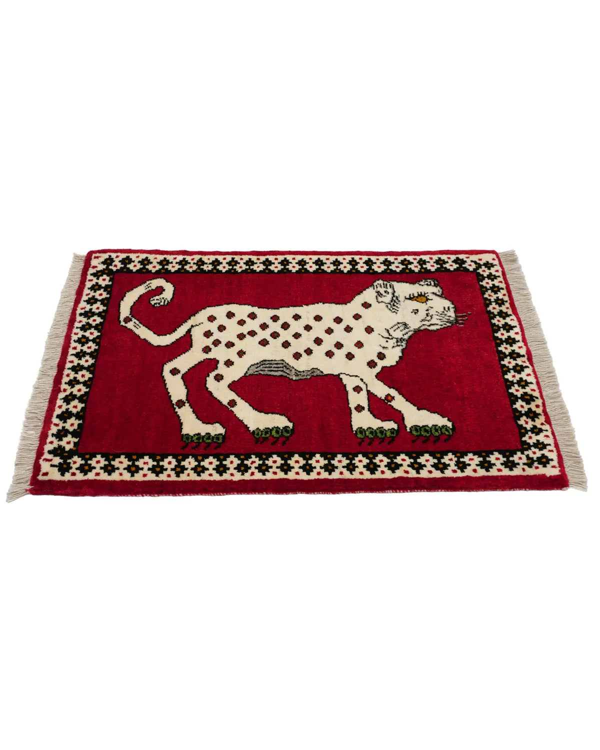ペルシャ絨毯 豹 ウール 約64cm x 95cm