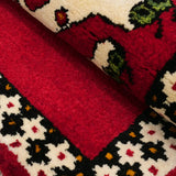 豹柄のウール製ペルシャ絨毯、玄関やリビング向けサイズ 赤(レッド)