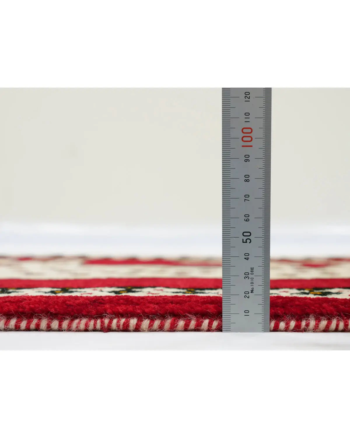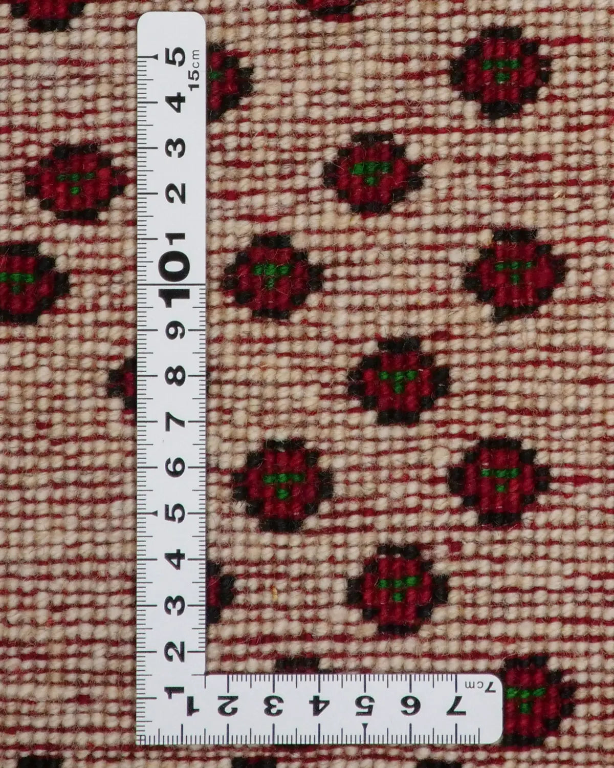 手織り絨毯の製法は、素材や地域によって異なりますが、この絨毯は縦糸をしっかりと張り、その上に横糸を結ぶ伝統的な手法で織り上げられています。