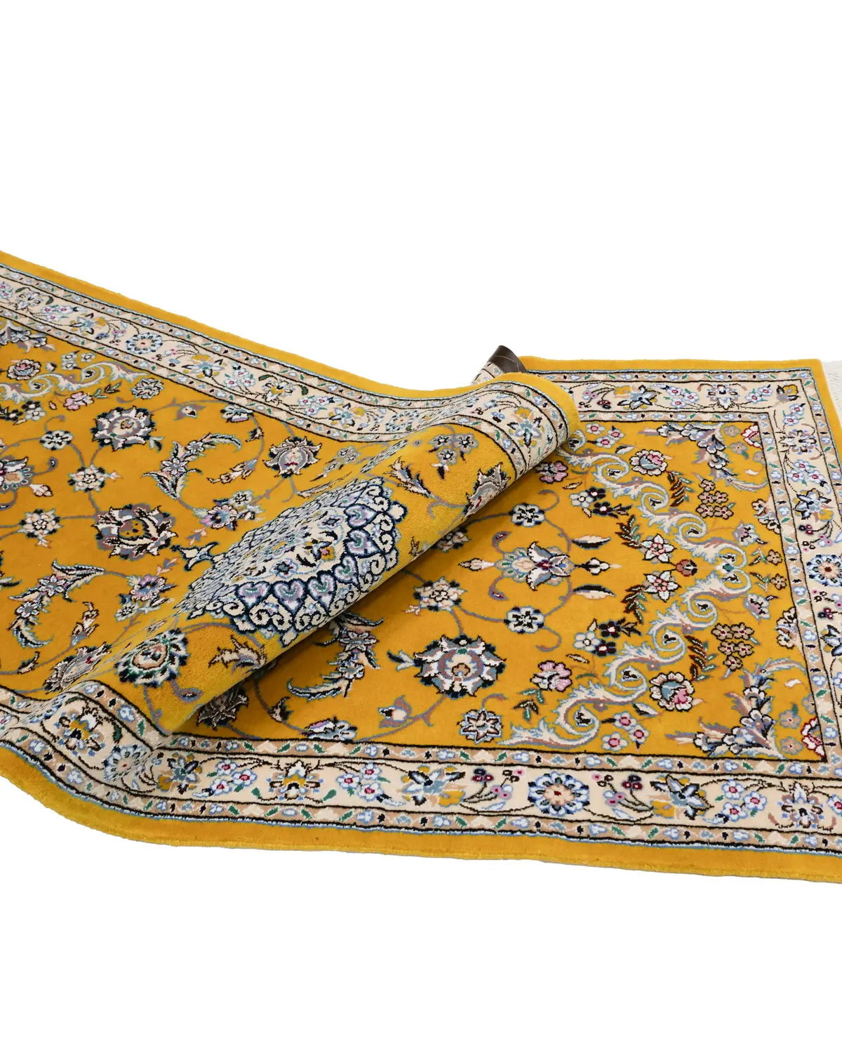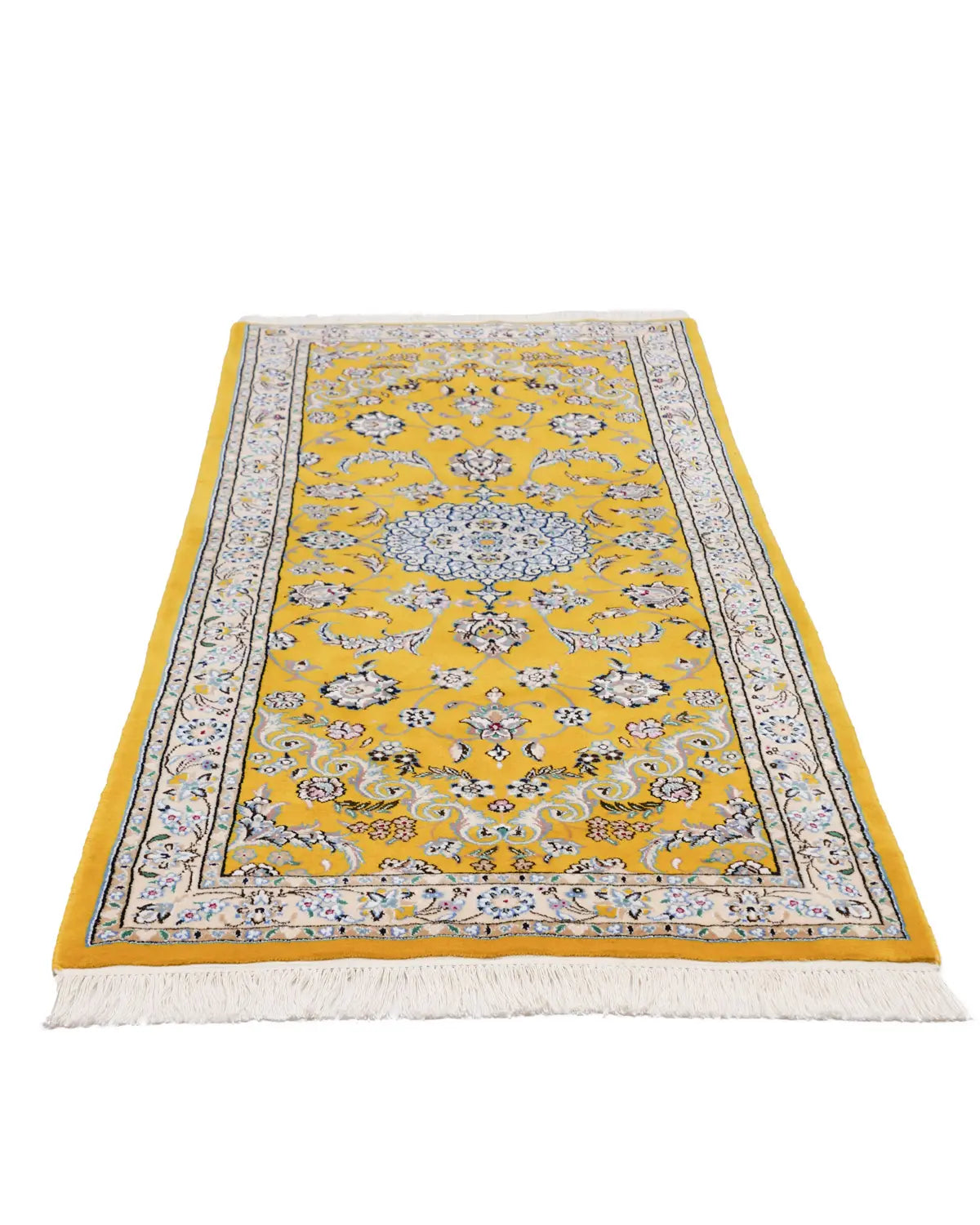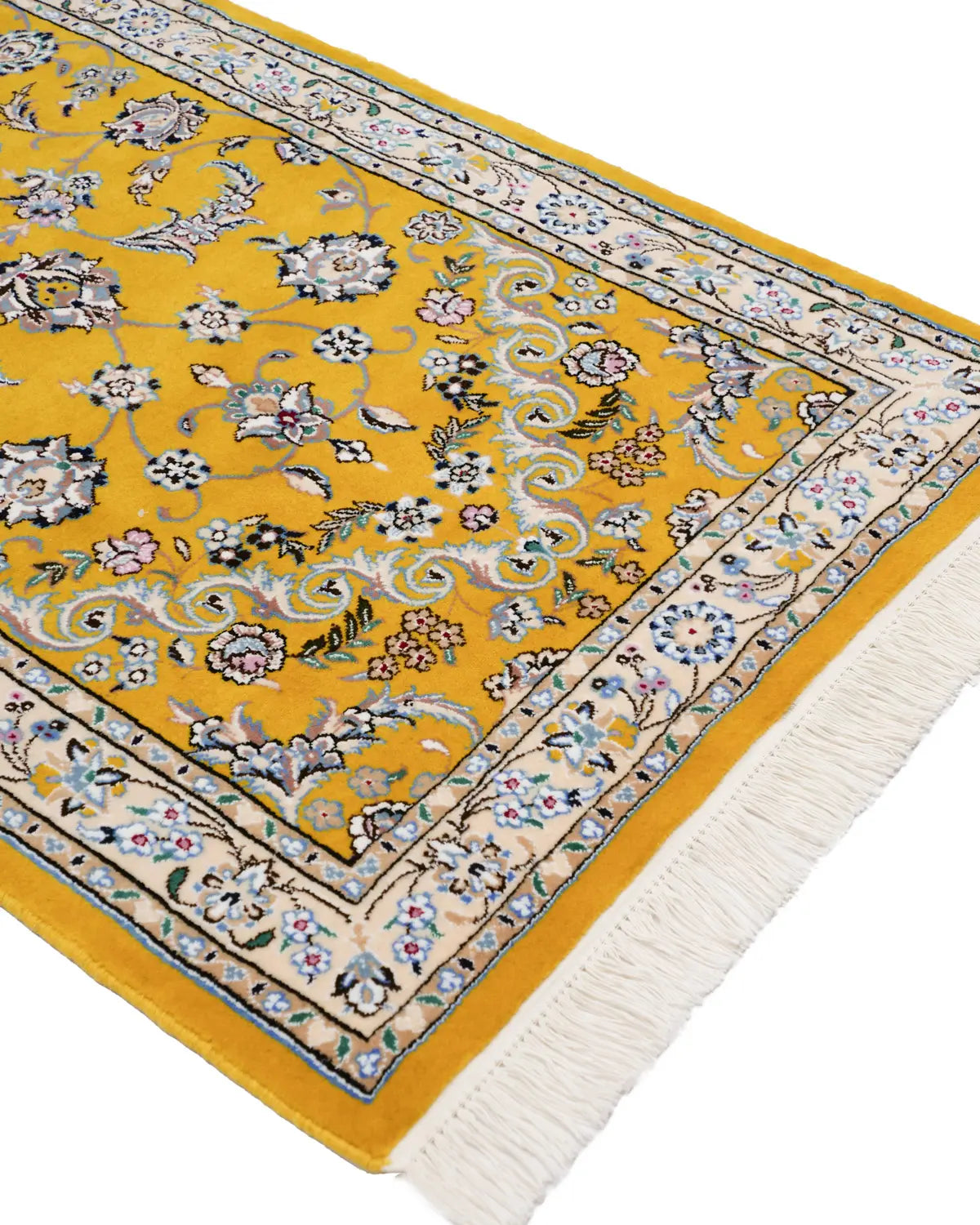 黄色のペルシャ絨毯 ナイン産 玄関や廊下に最適なサイズ