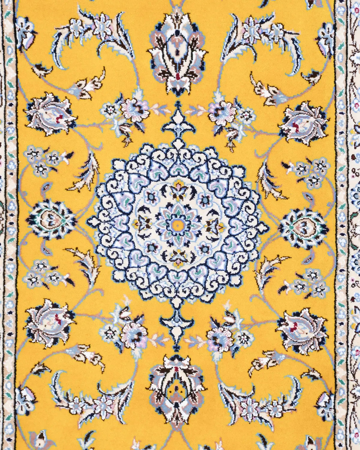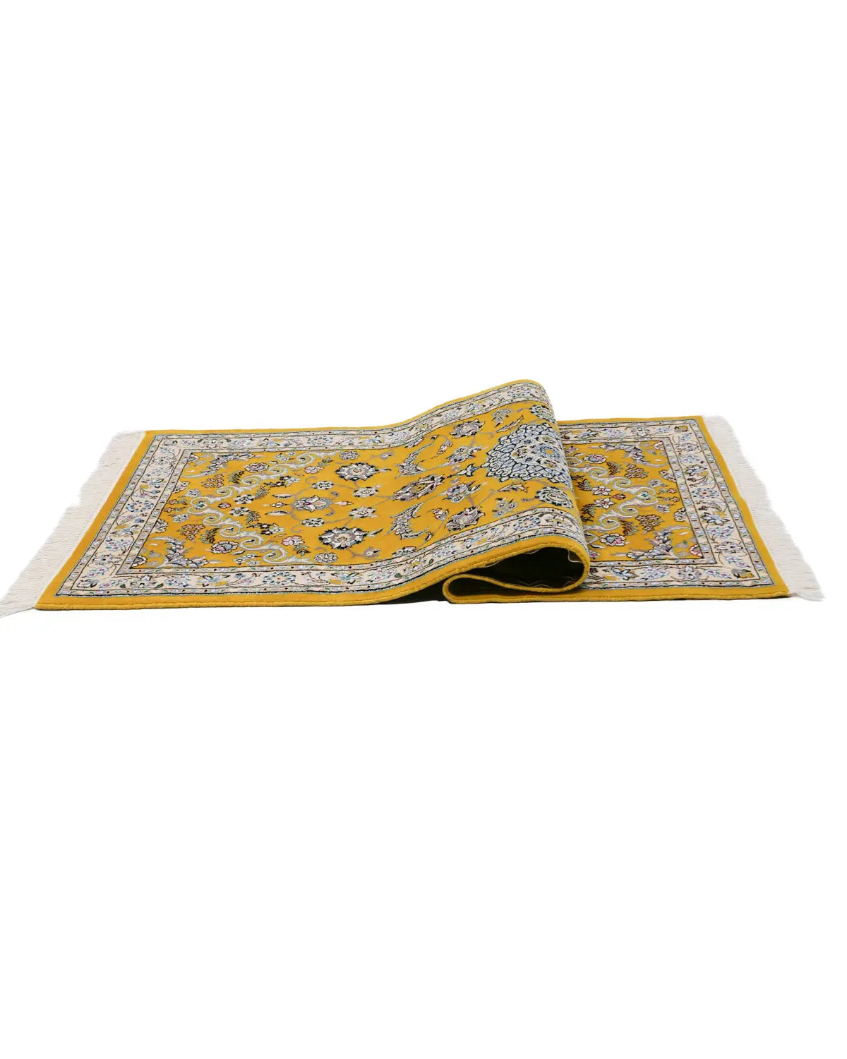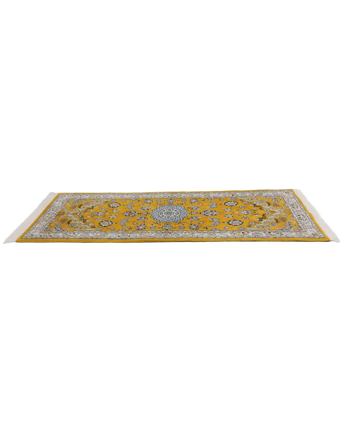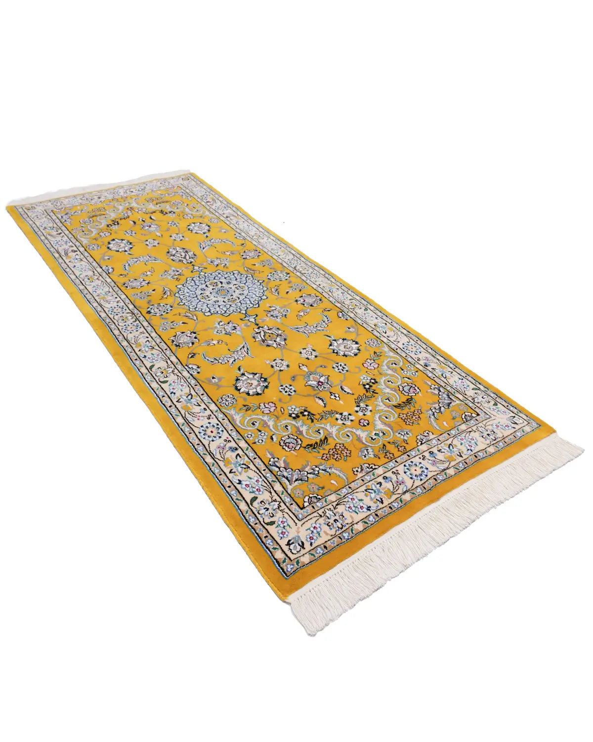 黄色のペルシャ絨毯 ナイン産 玄関や廊下に最適なサイズ
