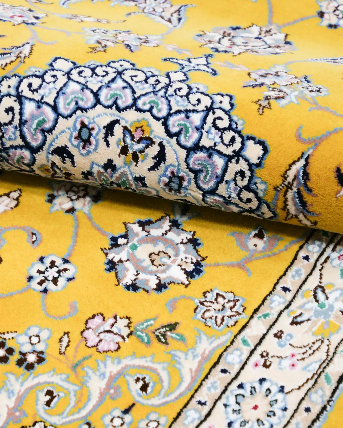 ナイン産の絨毯は、密度の高いノット(結び目)と高品質なウールやシルクを使用した、上質な仕上がりが特徴です。