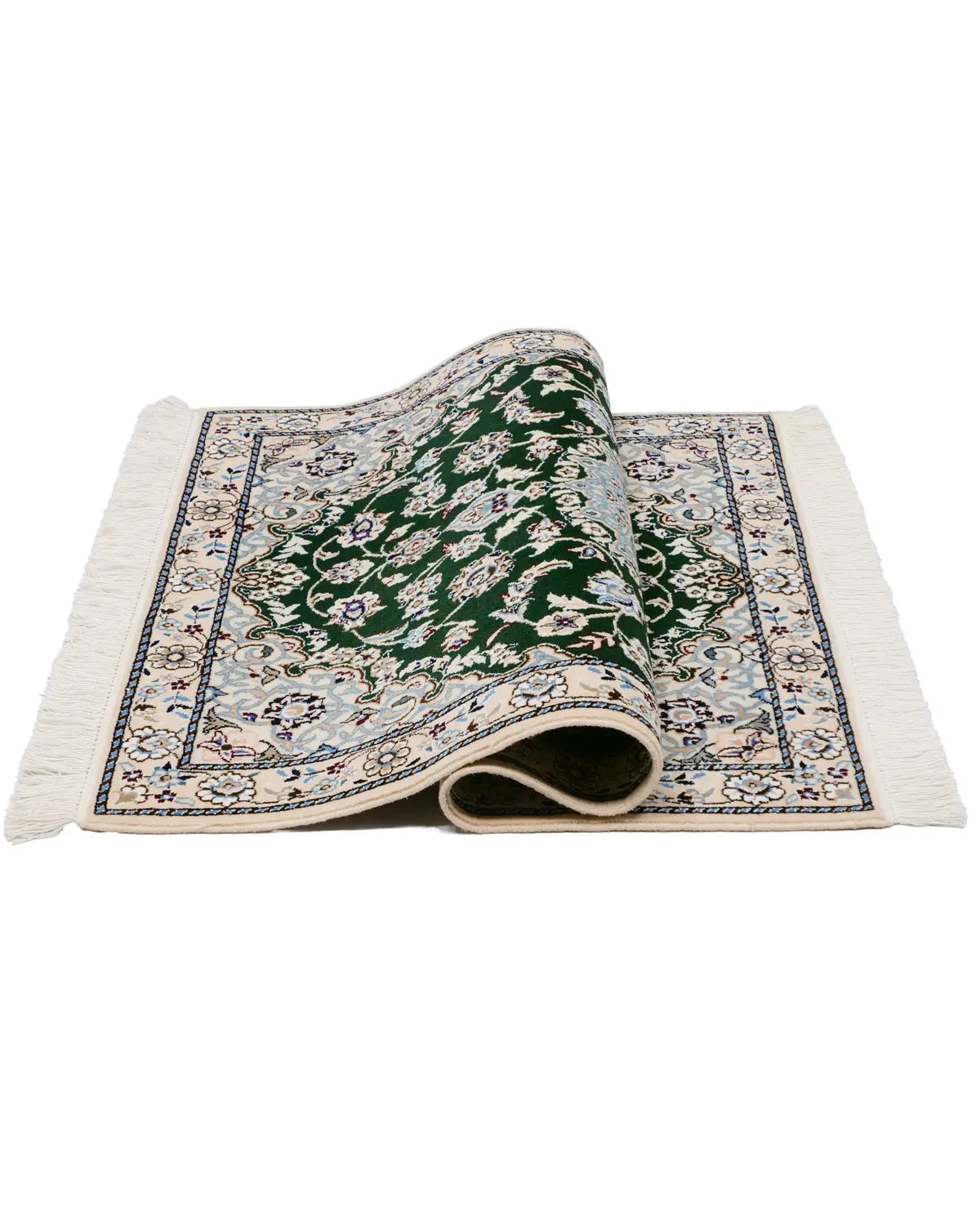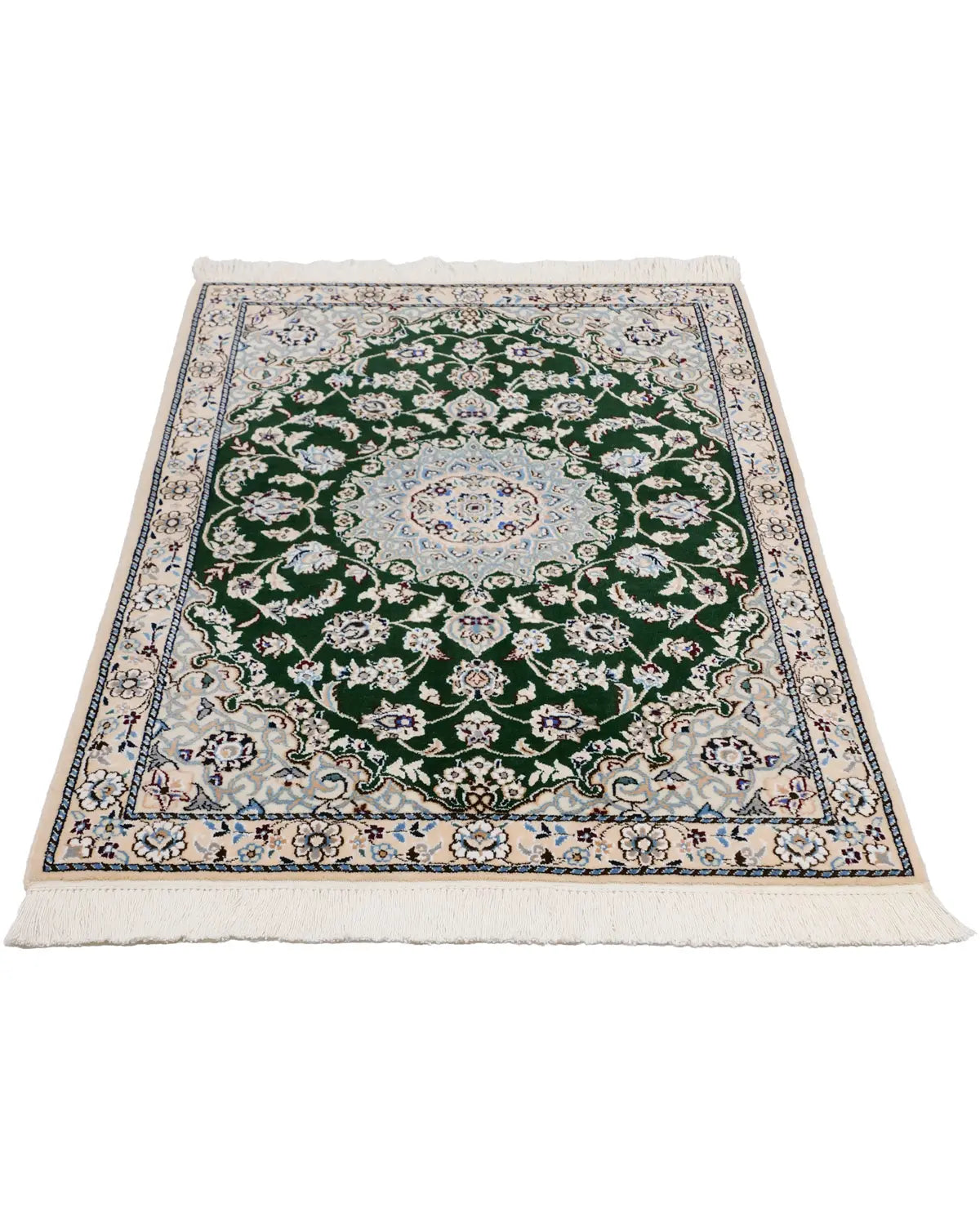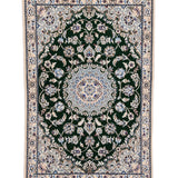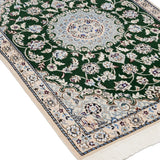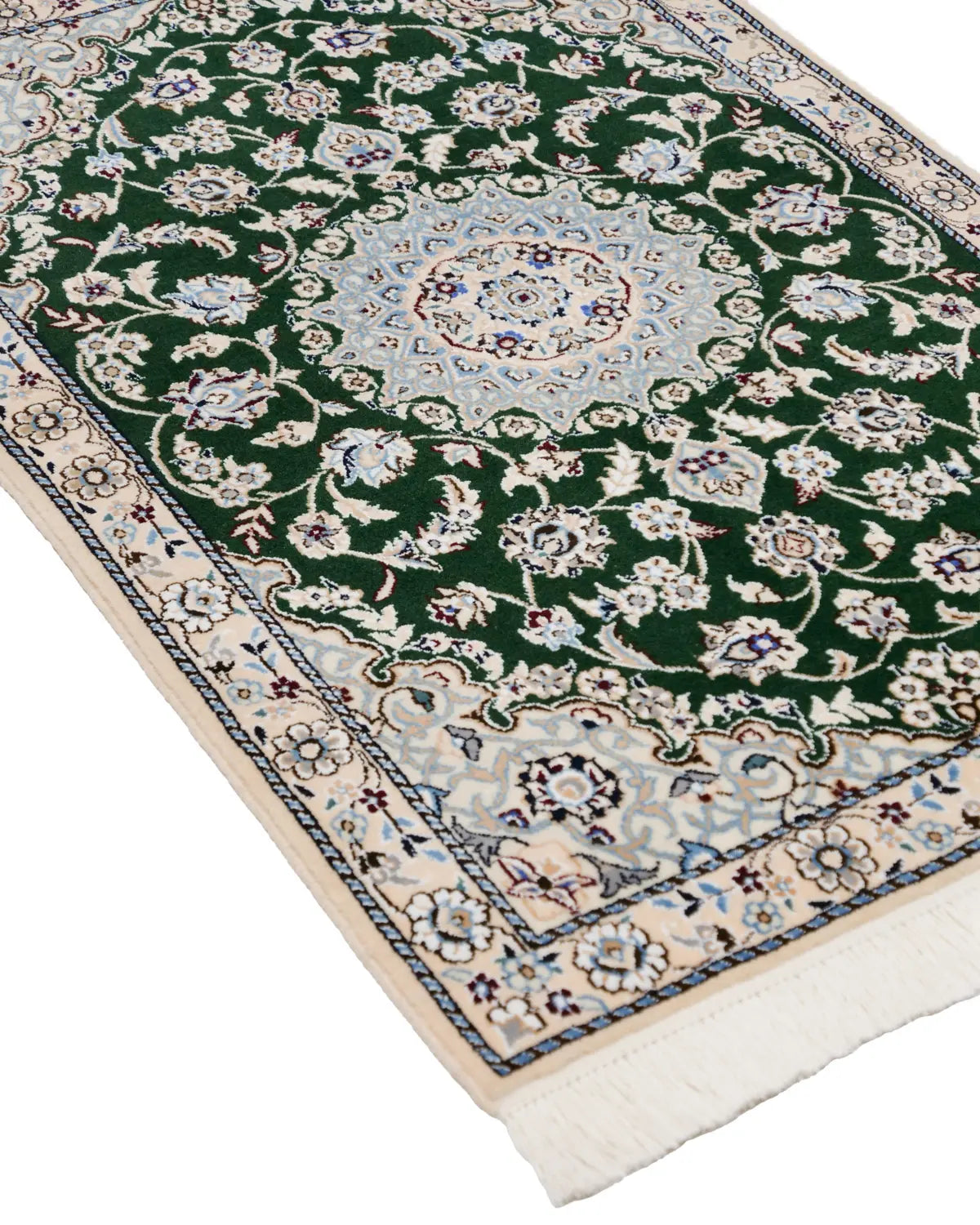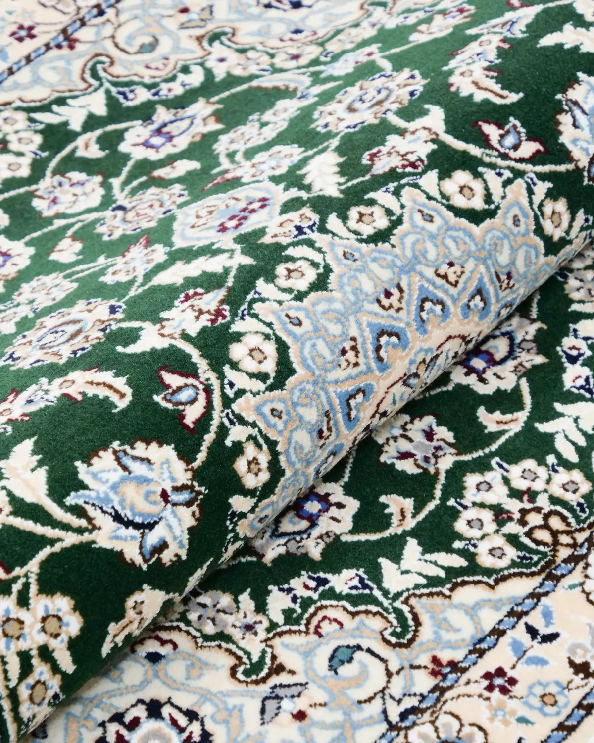 ペルシャ絨毯 ナイン産 ウール リビング 緑(グリーン)