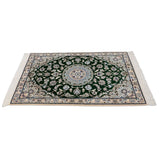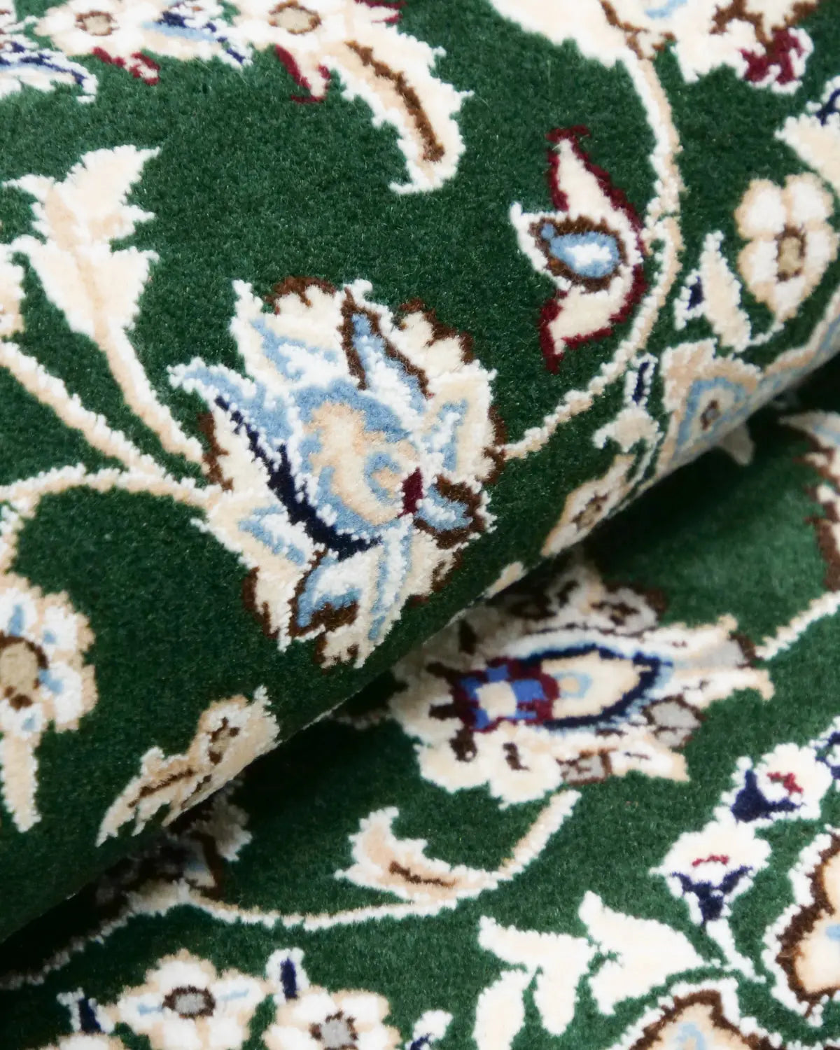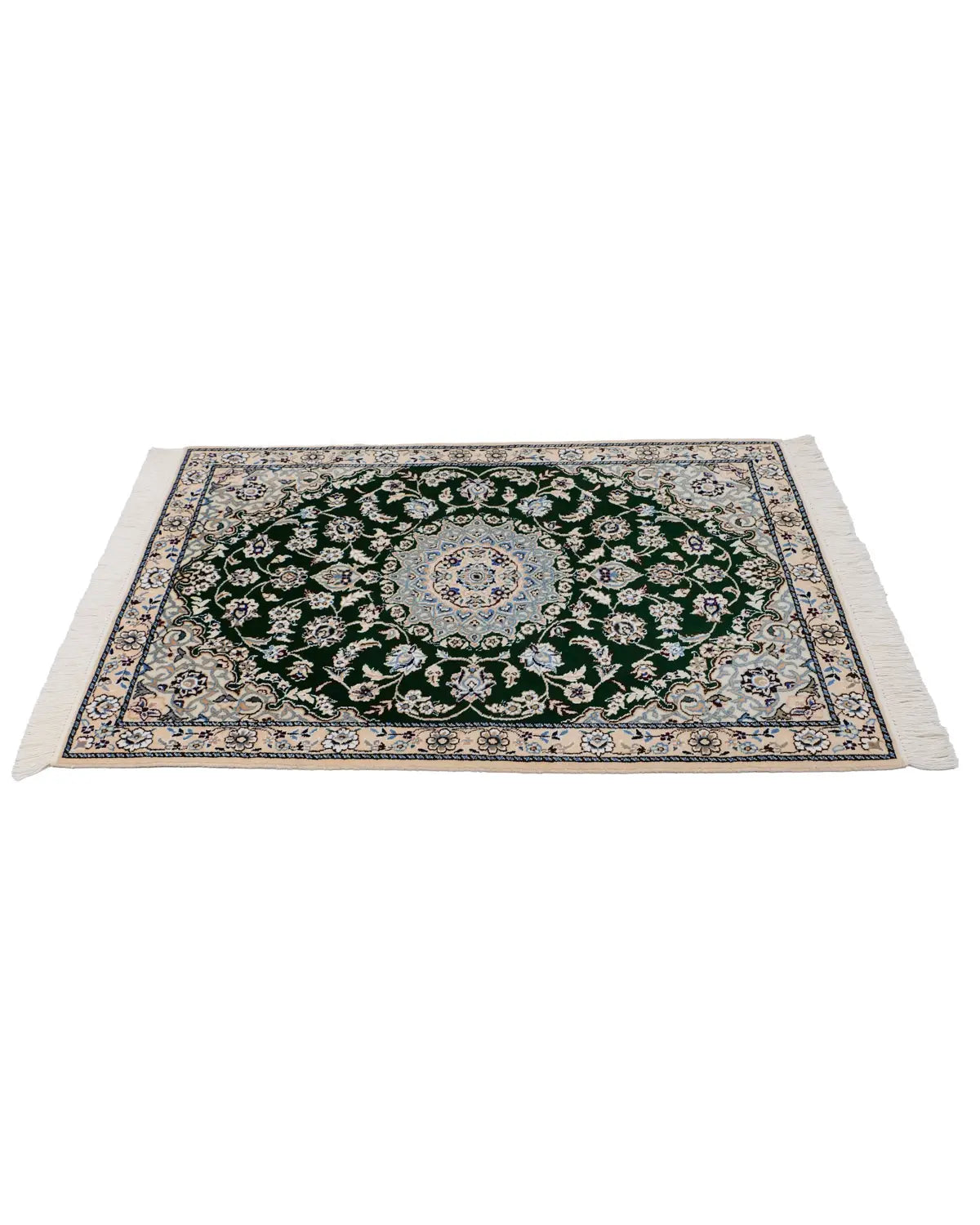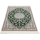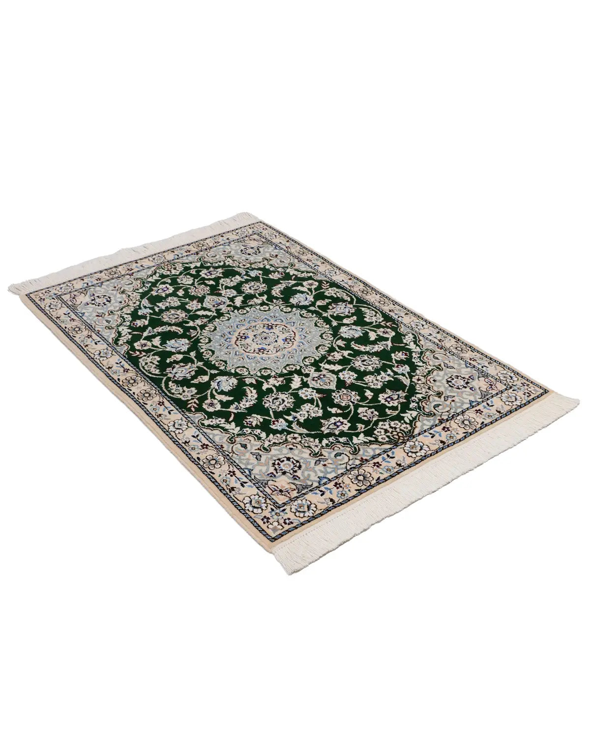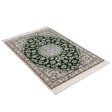 ペルシャ絨毯 ナイン産 ウール リビング 緑(グリーン)