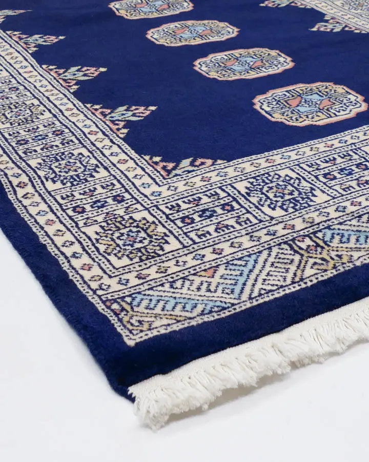 パキスタン絨毯 約94cm x 150cm 青 ウール 手織りラグ ボハラ柄 ネイビー