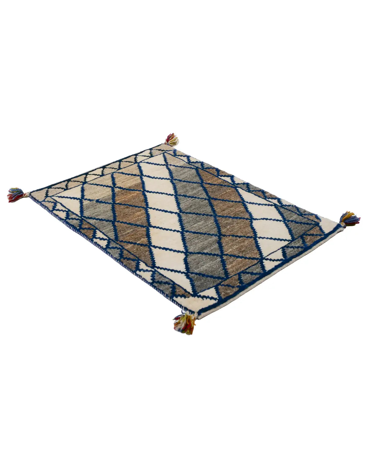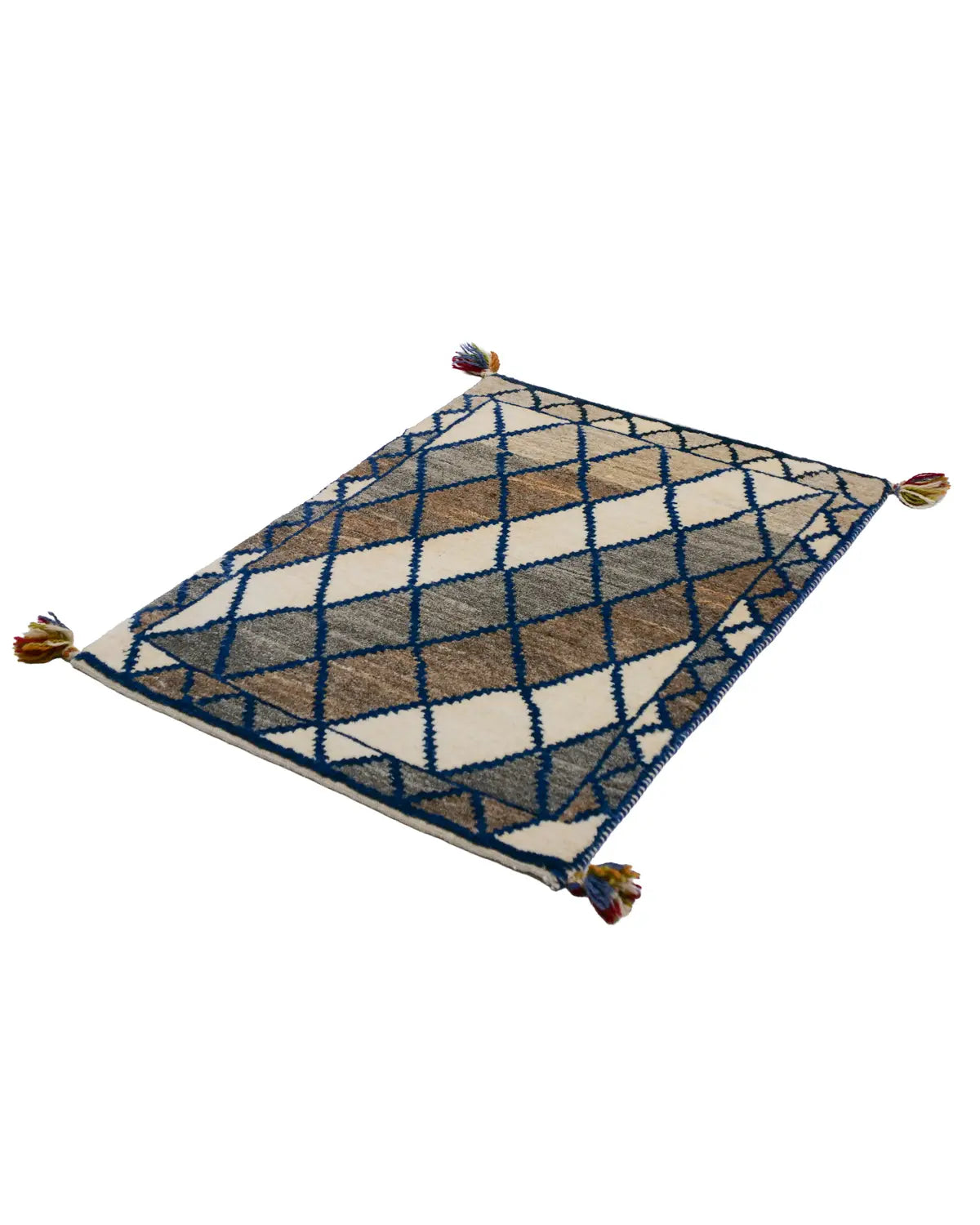 ペルシャギャッベ 手織りウールラグ シーラーズ産 幾何学的なひし形模様 ミニマルデザイン