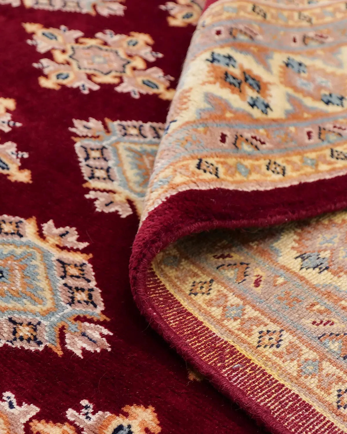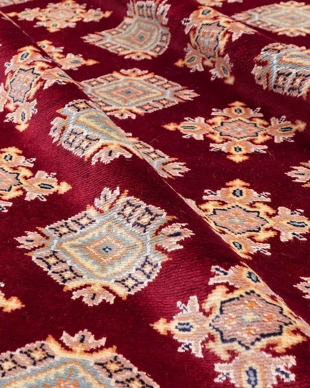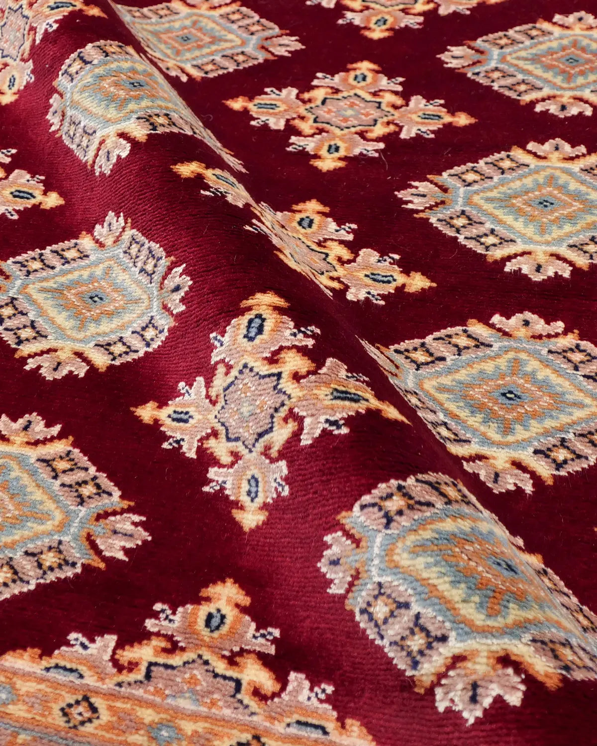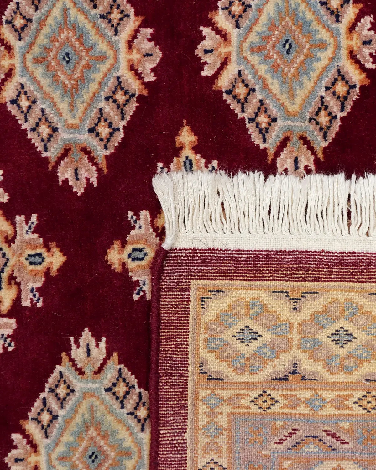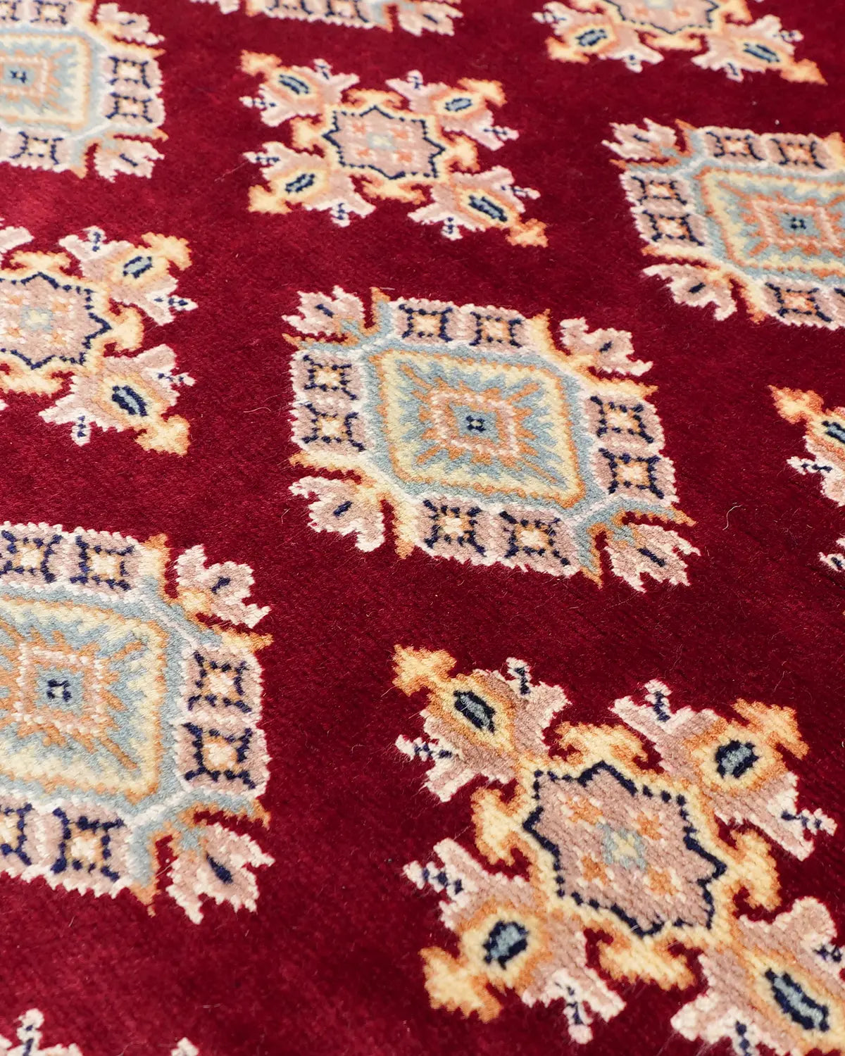 パキスタン絨毯 ラホール産 赤系ウール 幾何学模様 手織りラグ