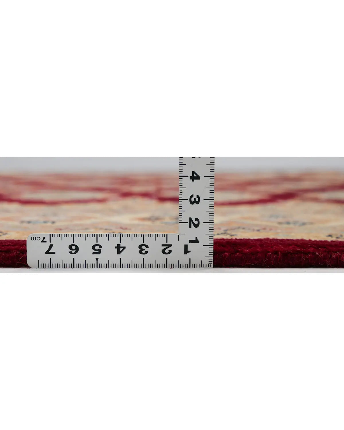 ラホール産パキスタン絨毯 ウール素材 赤系クラシックラグの厚み