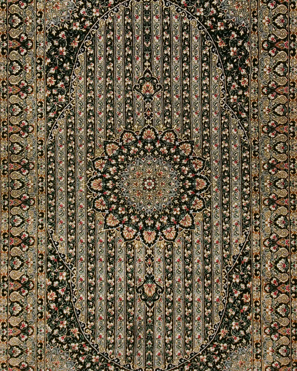 クム産手織りシルク絨毯 中央メダリオンデザイン