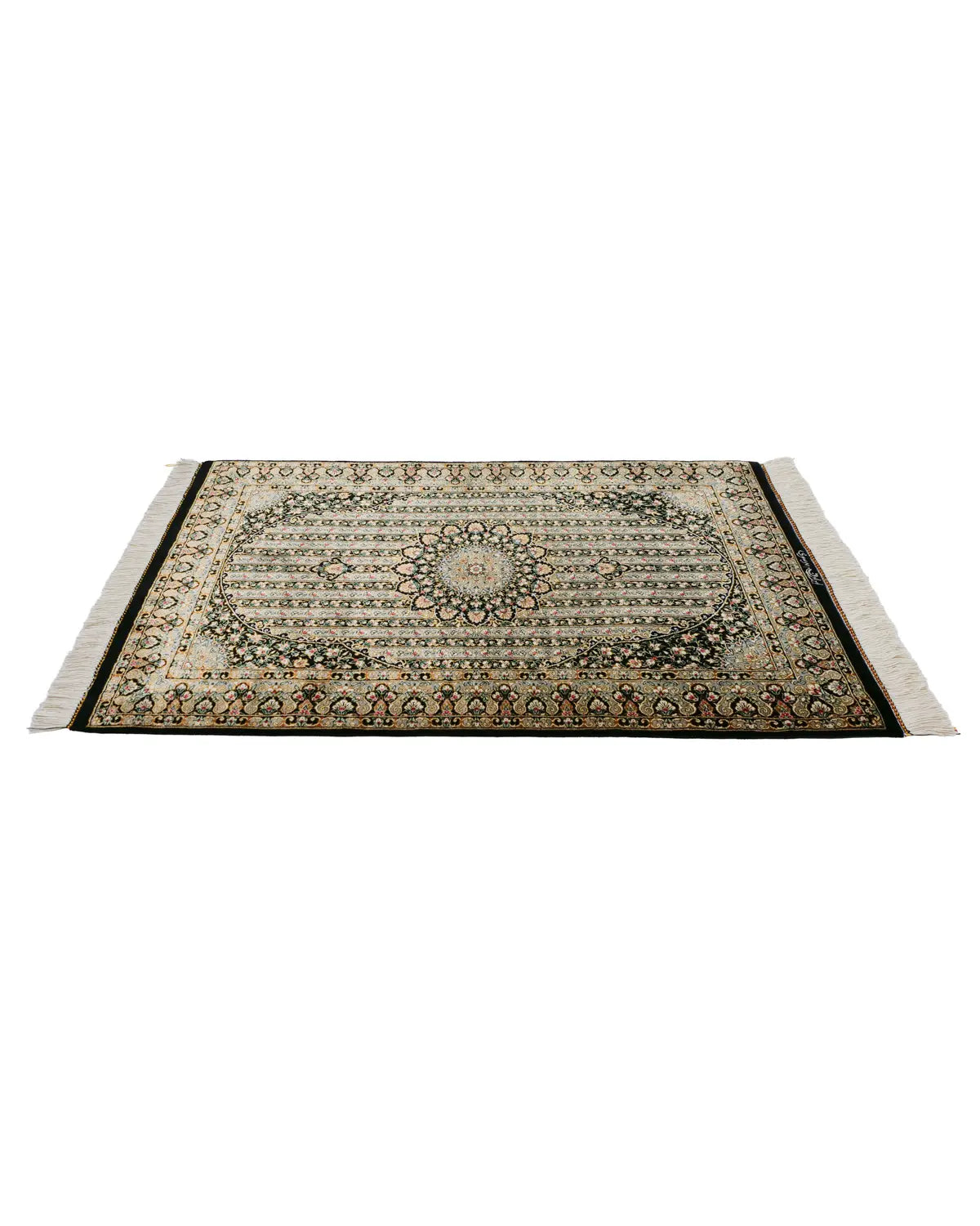 クム産ペルシャシルクラグ 黒色 メダリオン