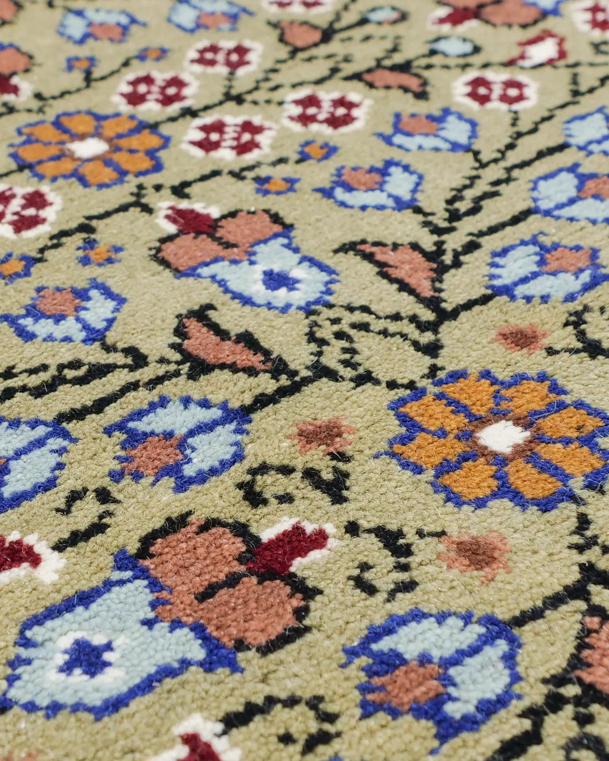 カイセリで織られた手織りトルコ絨毯 ウール素材 花文様 モスグリーン ラグ