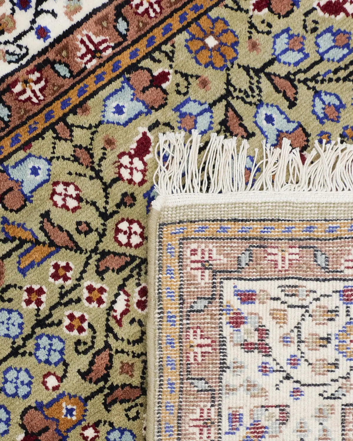 トルコ絨毯 手織り カイセリ ウール素材 モスグリーン フラワーモチーフ