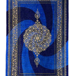 This unique piece features a swirl pattern on a base of varying shades of blue. It has a beautiful finish that is perfect for a tapestry.