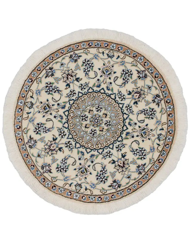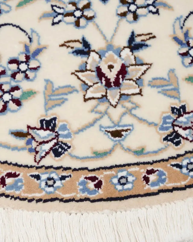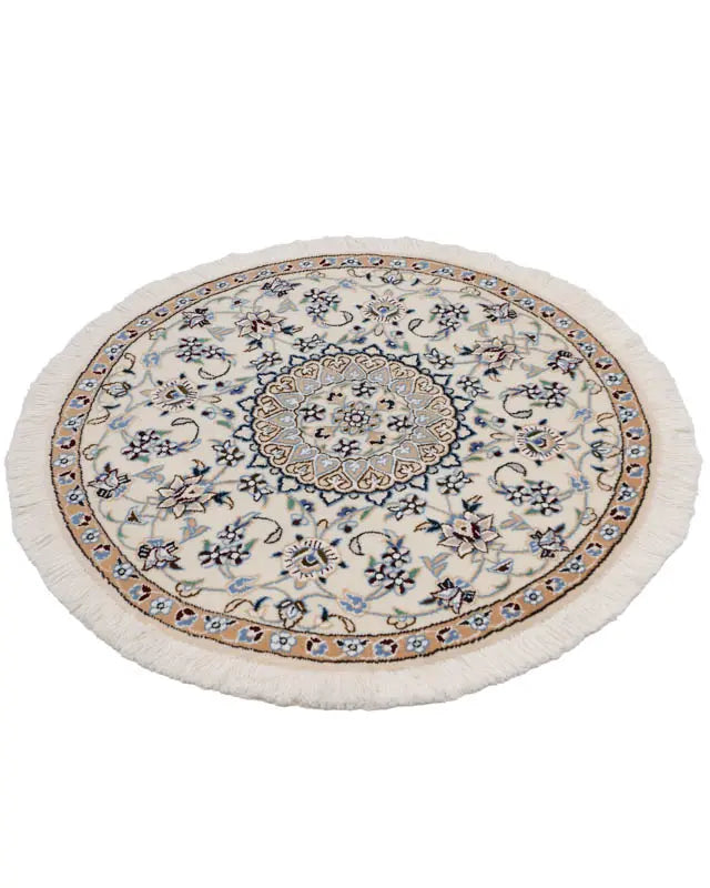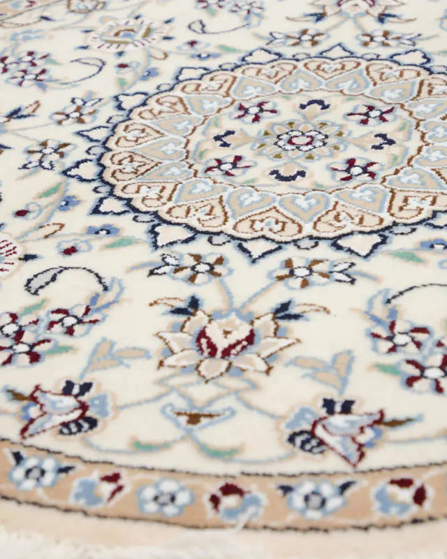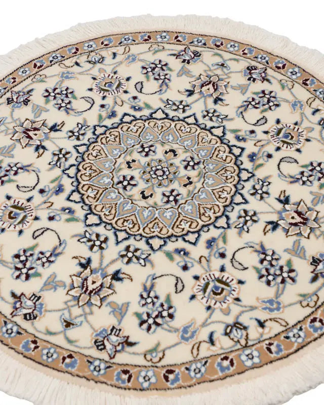 ペルシャ絨毯 円形 ナイン産 白(ホワイト) ウール