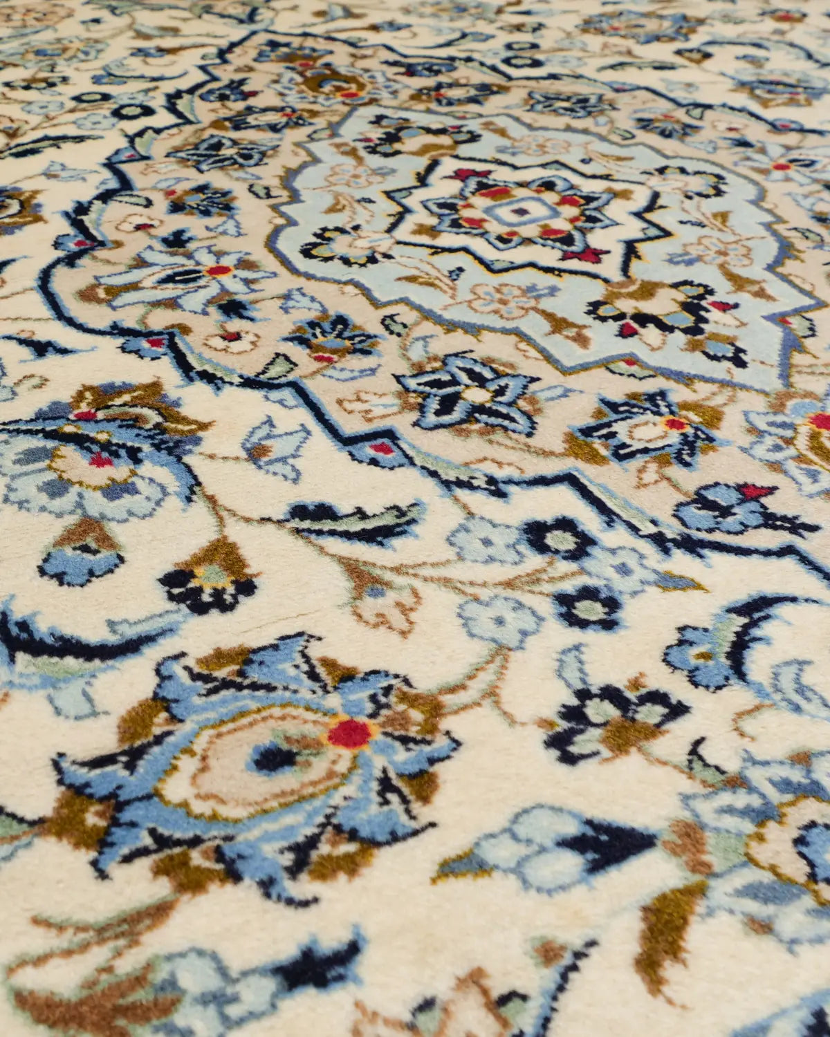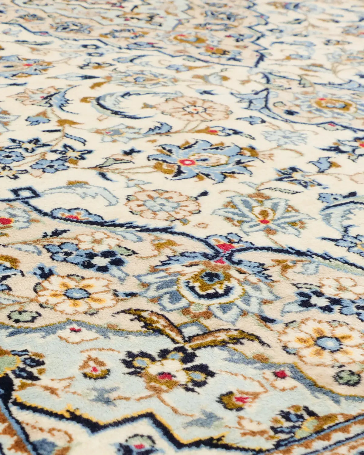 ペルシャ絨毯を代表する産地のひとつ、カシャーン産の一枚です。