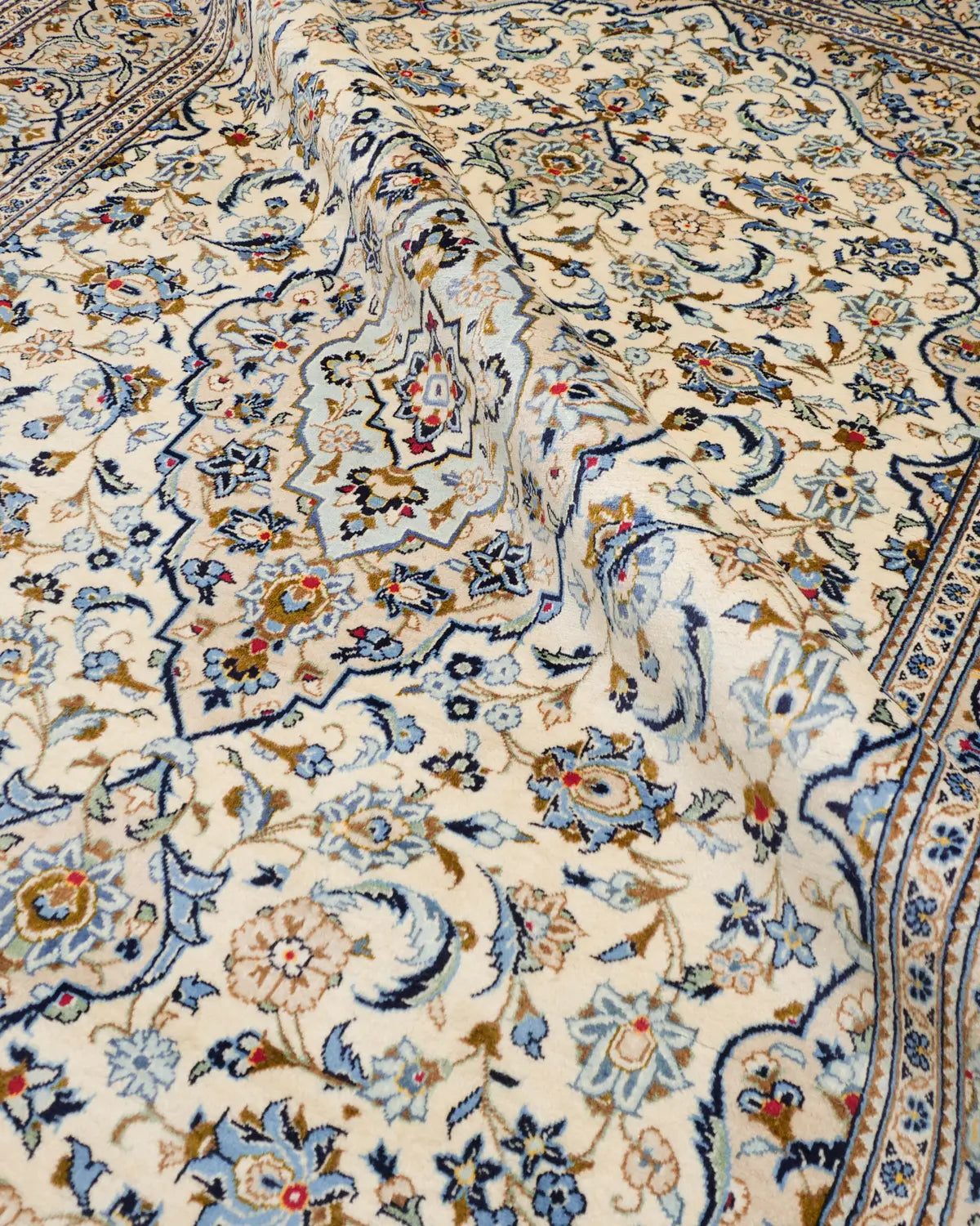Kashan Persian rugs are known for their classic, elegant, and traditional designs. They often feature rich colors such as deep crimson, navy blue, and ivory, which add a sense of luxury and sophistication to any space. Simply placing one in a room can instantly elevate the décor and create a refined atmosphere.