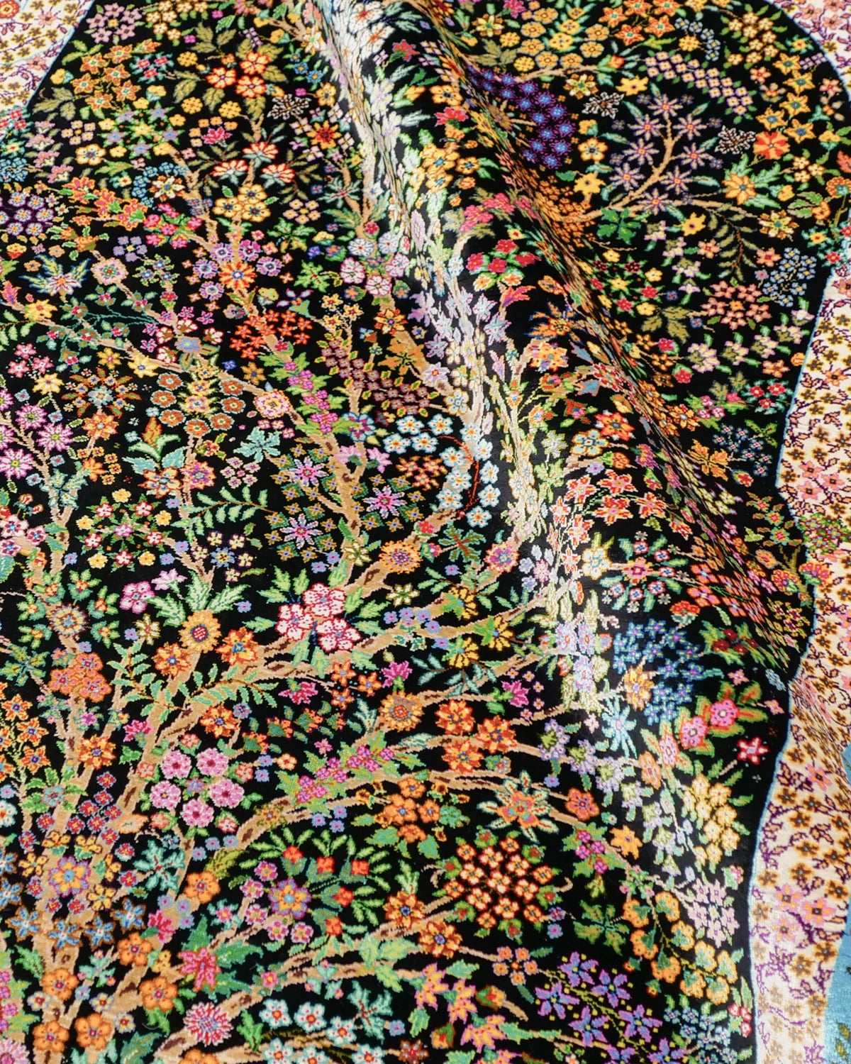 クム産シルクのペルシャ絨毯 エサギ工房 生命の樹デザイン