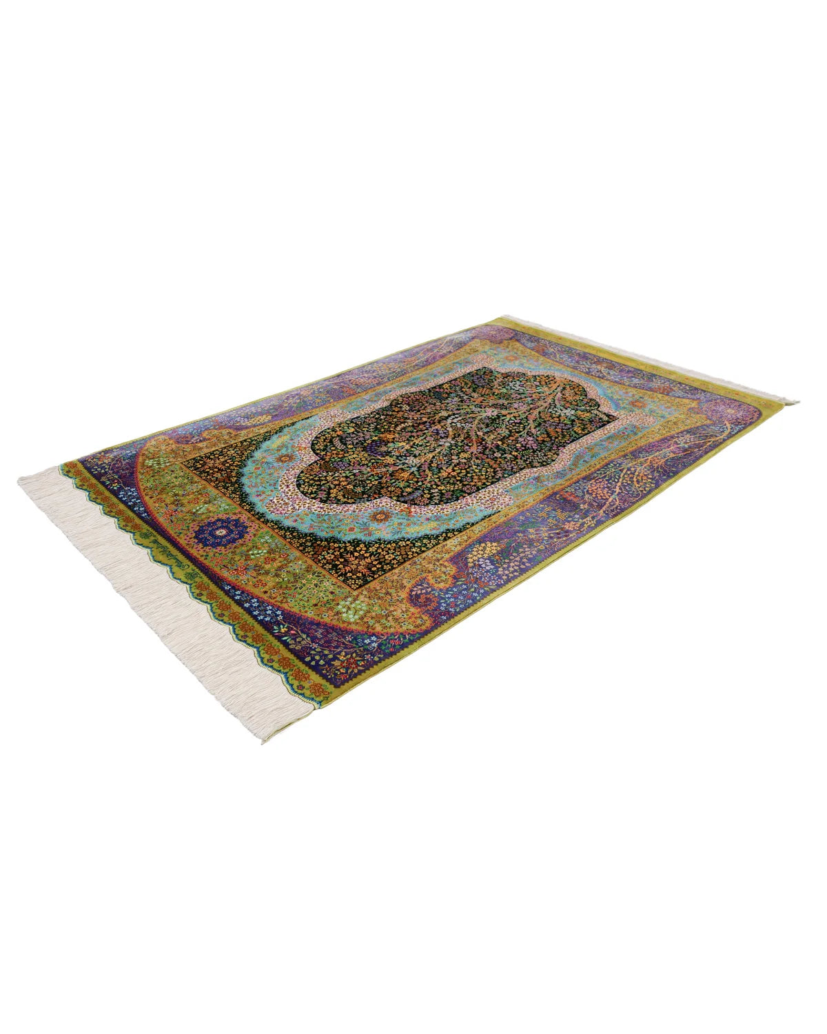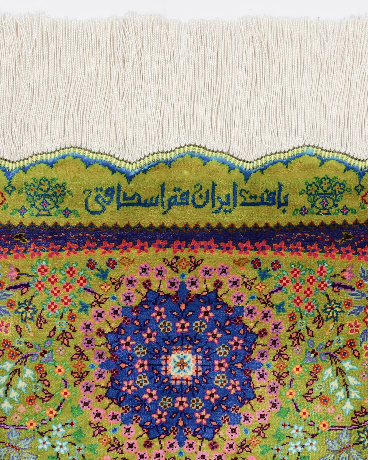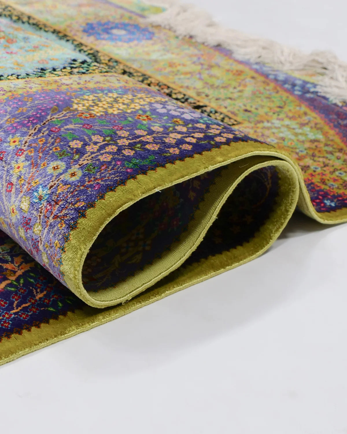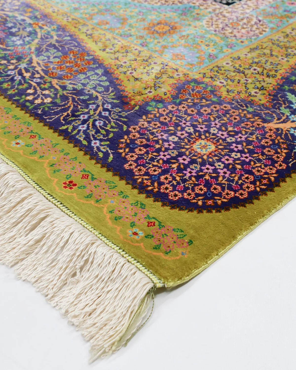 エスハギ工房 クム産ペルシャ絨毯 黄緑基調のシルク織り