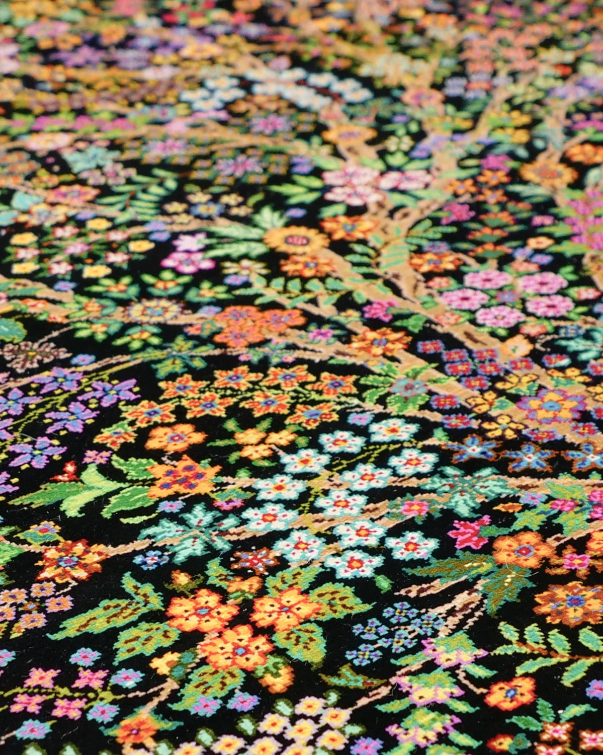 エスハギ工房 クム産シルクラグ 花々が咲く生命の樹文様