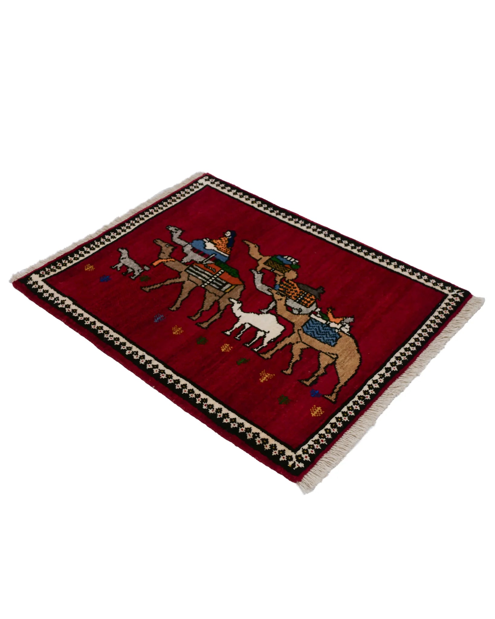 This is a hand-woven Persian carpet made by the Qashqai people of Shiraz , Iran.