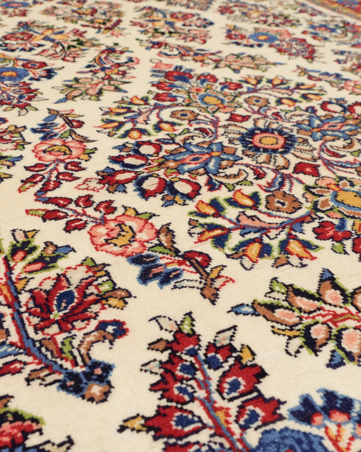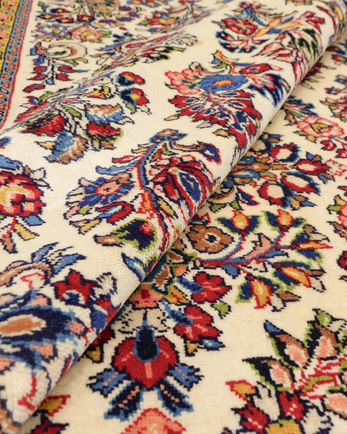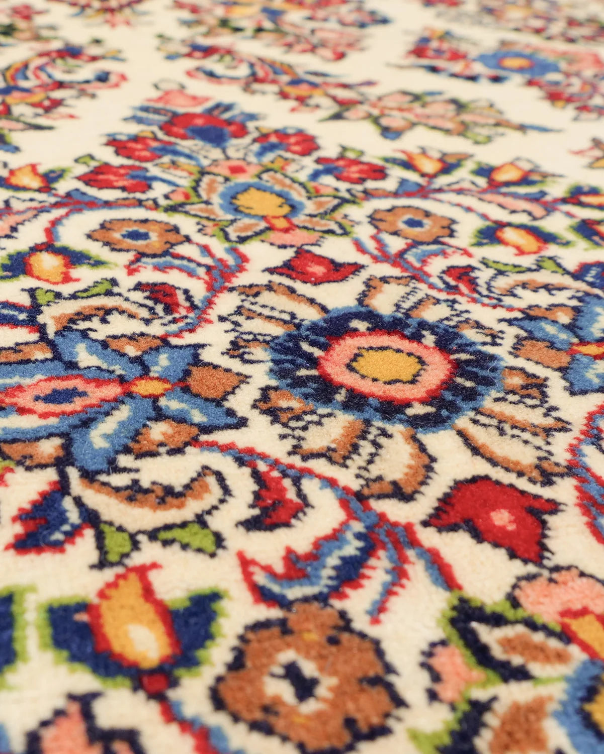 サルーク産ペルシャ絨毯 生成りの背景に鮮やかな花束が浮かぶ華やかな一枚