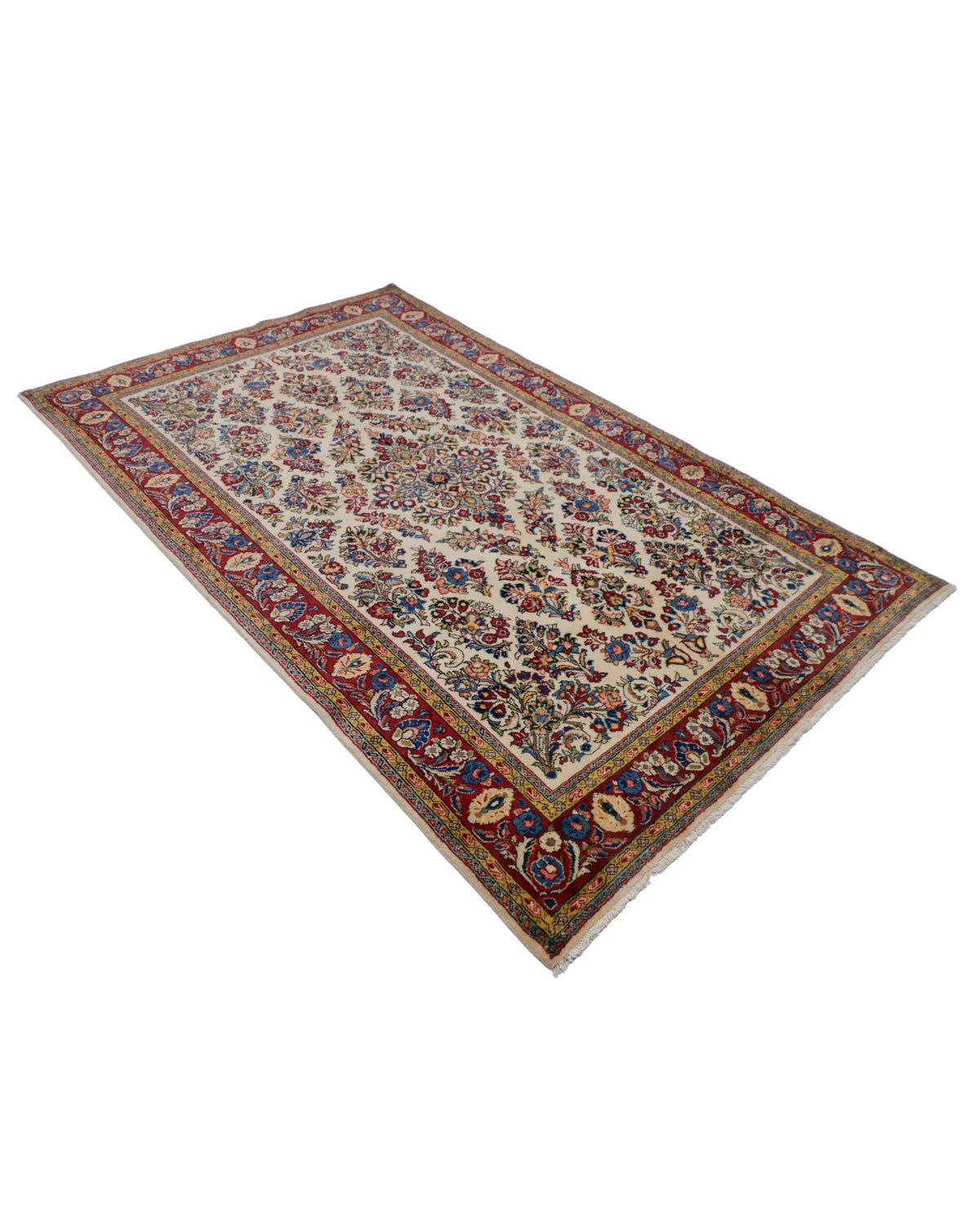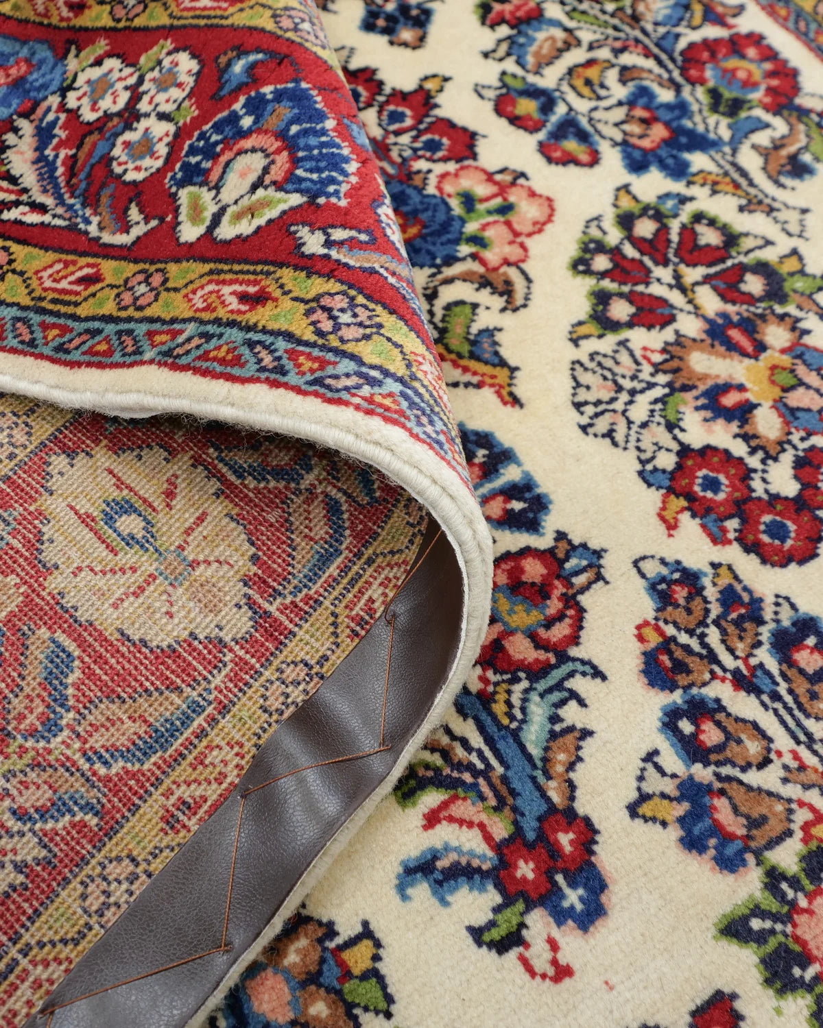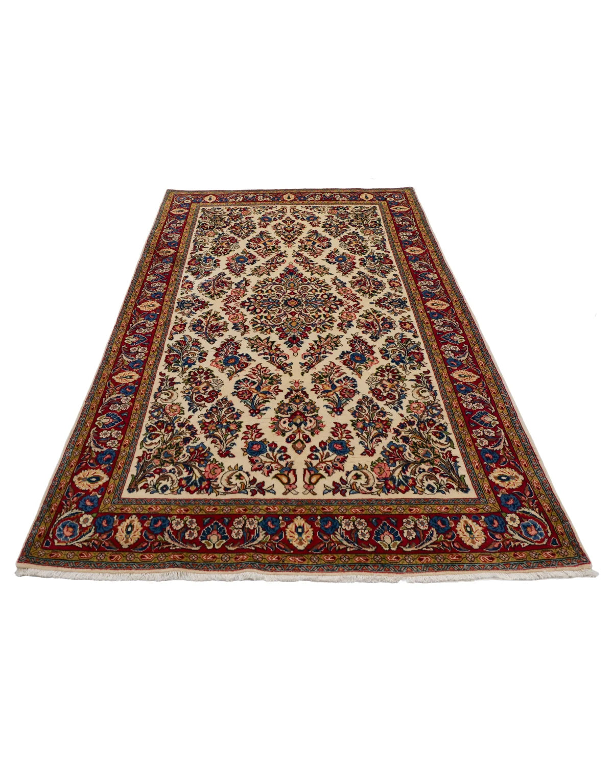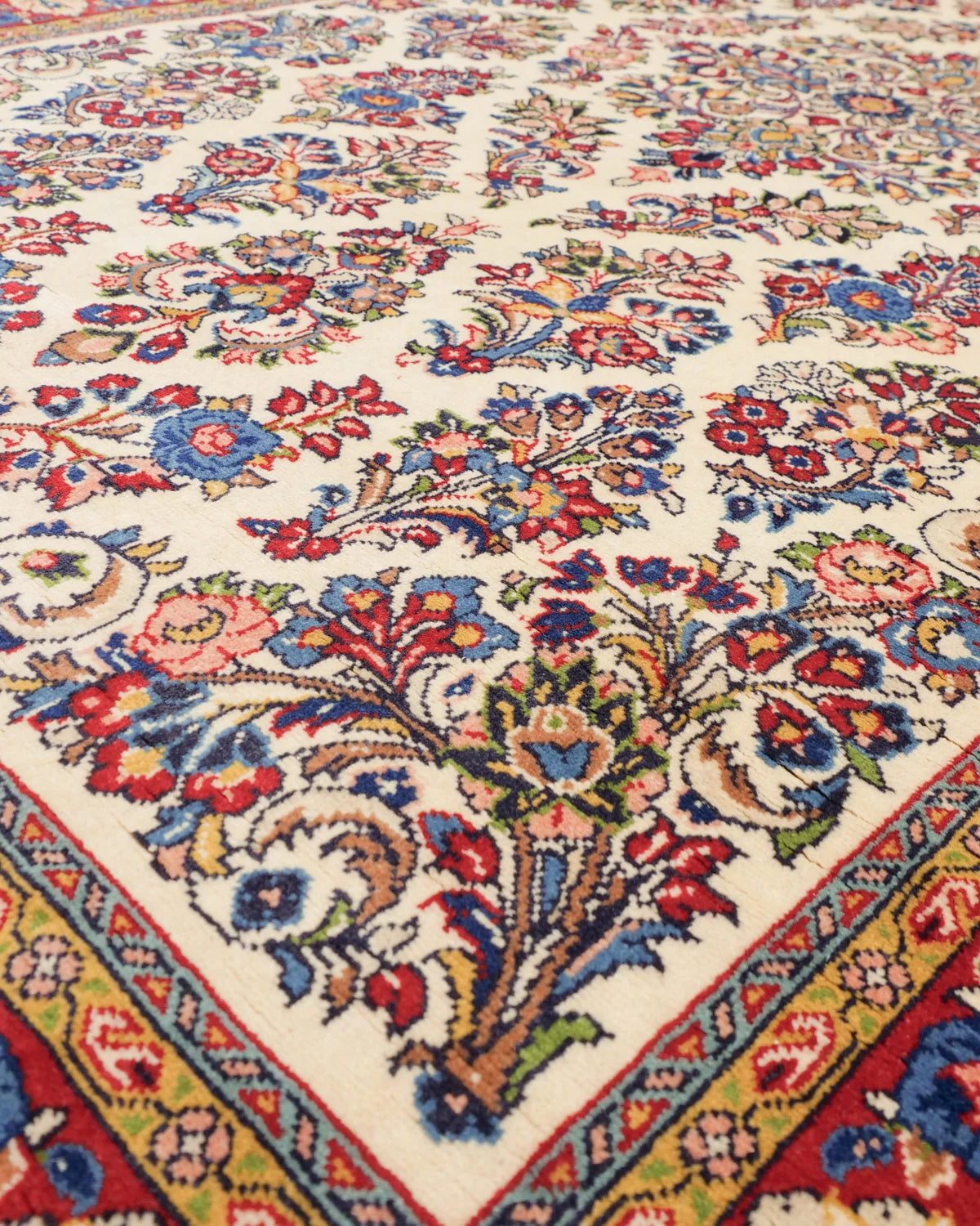 サルーク産ペルシャ絨毯 生成りの背景に鮮やかな花束が浮かぶ華やかな一枚