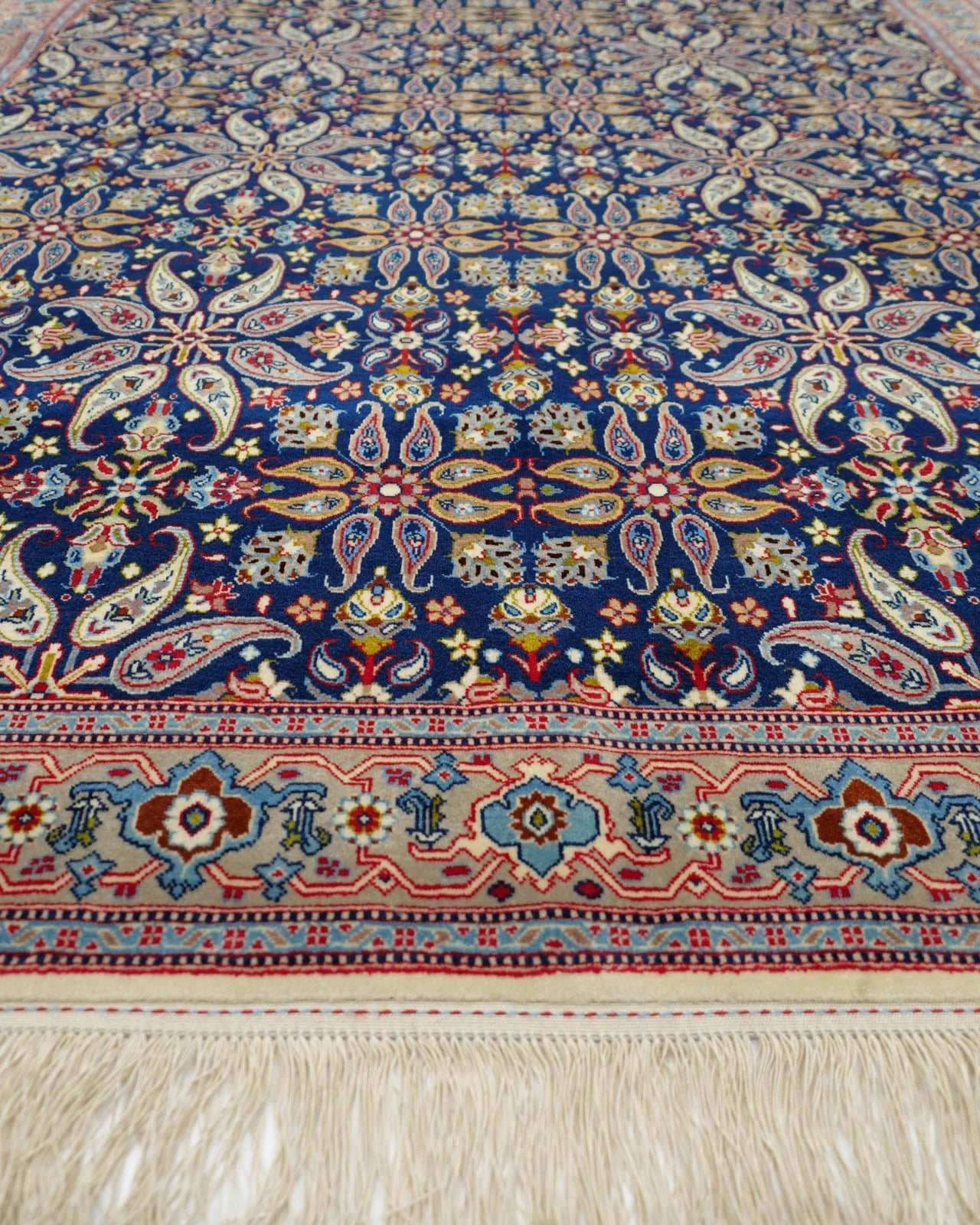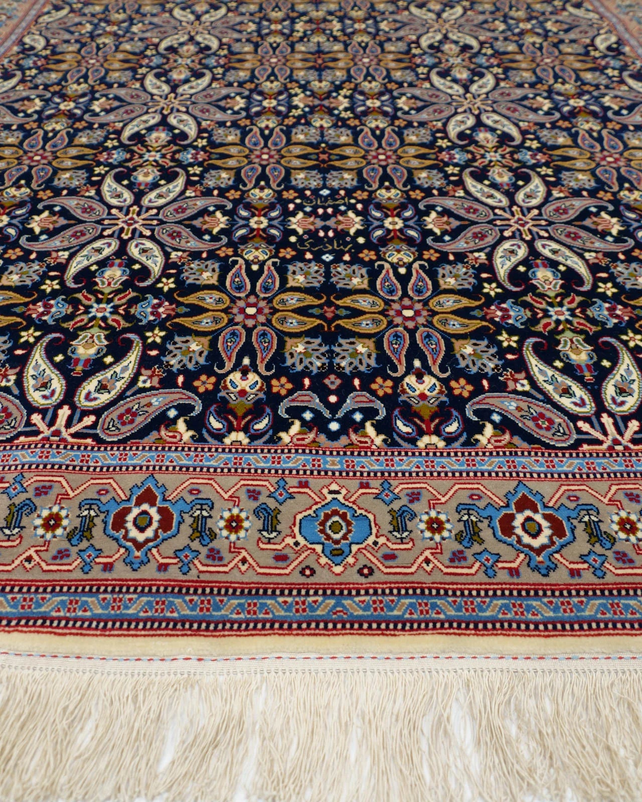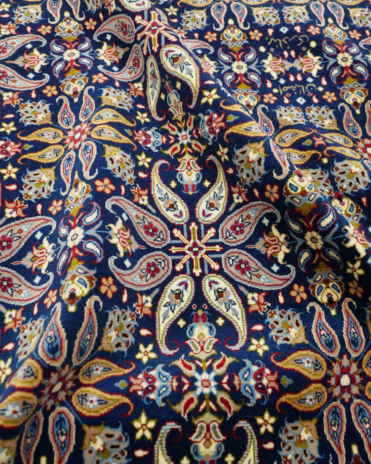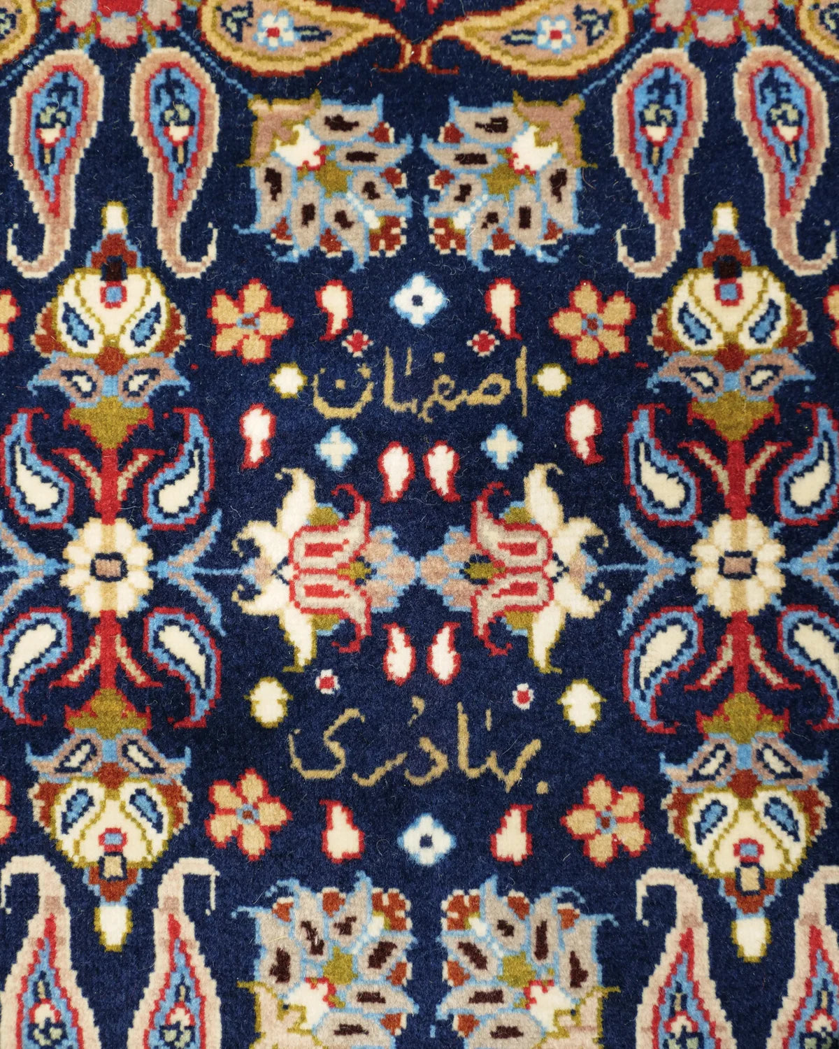 Isfahan rugs are distinguished by their use of "kork wool," a fine and soft wool taken from the neck of young lambs. This high-quality material offers both durability and resistance to dirt. The designs are refined and elegant, with an exceptionally high knot density that enhances the intricate beauty of the patterns. Traditional motifs such as medallions—often inspired by mosque domes—and intricate arabesque (Eslimi) designs are commonly featured, reflecting the deep artistic heritage of Persian craftsmanship.