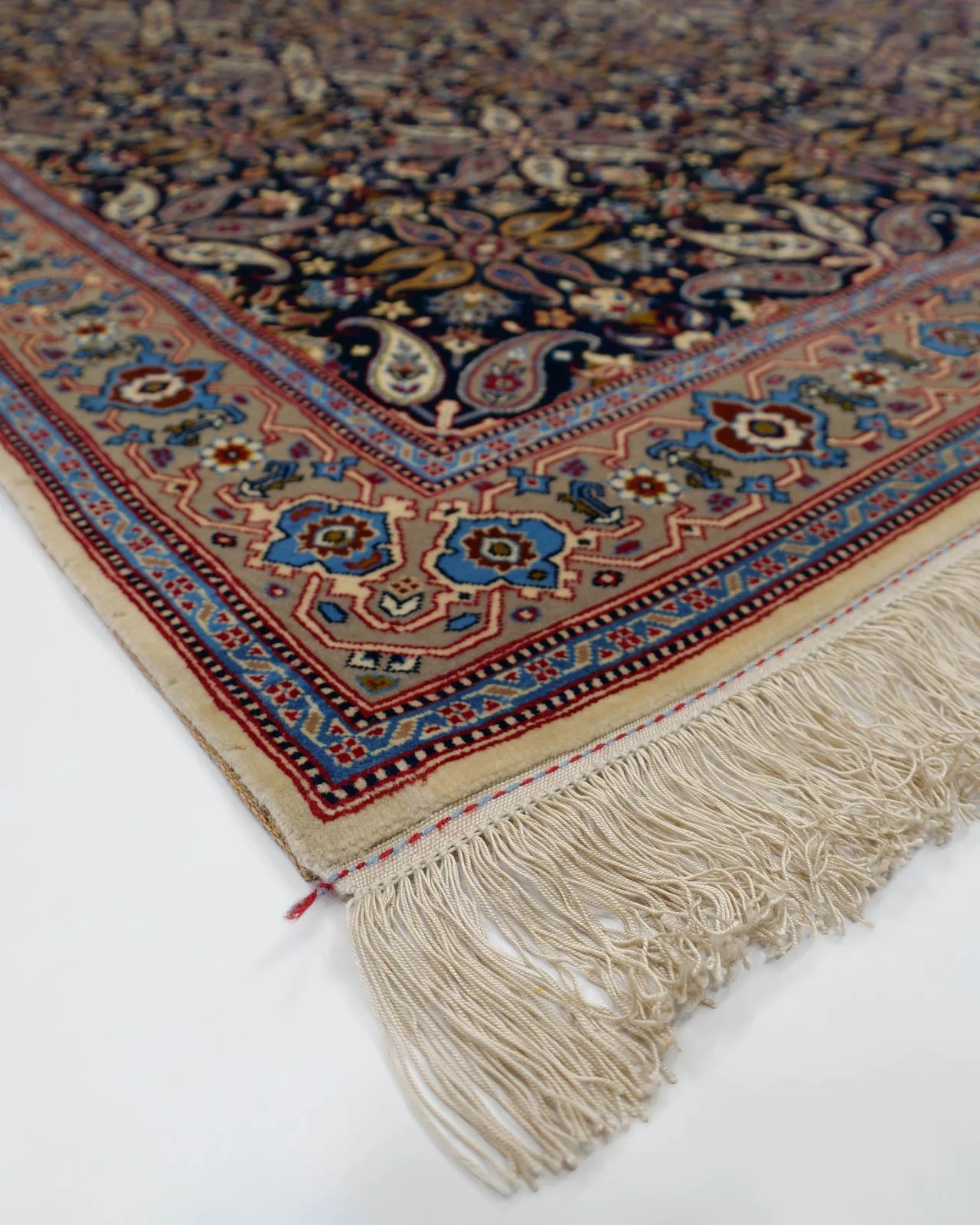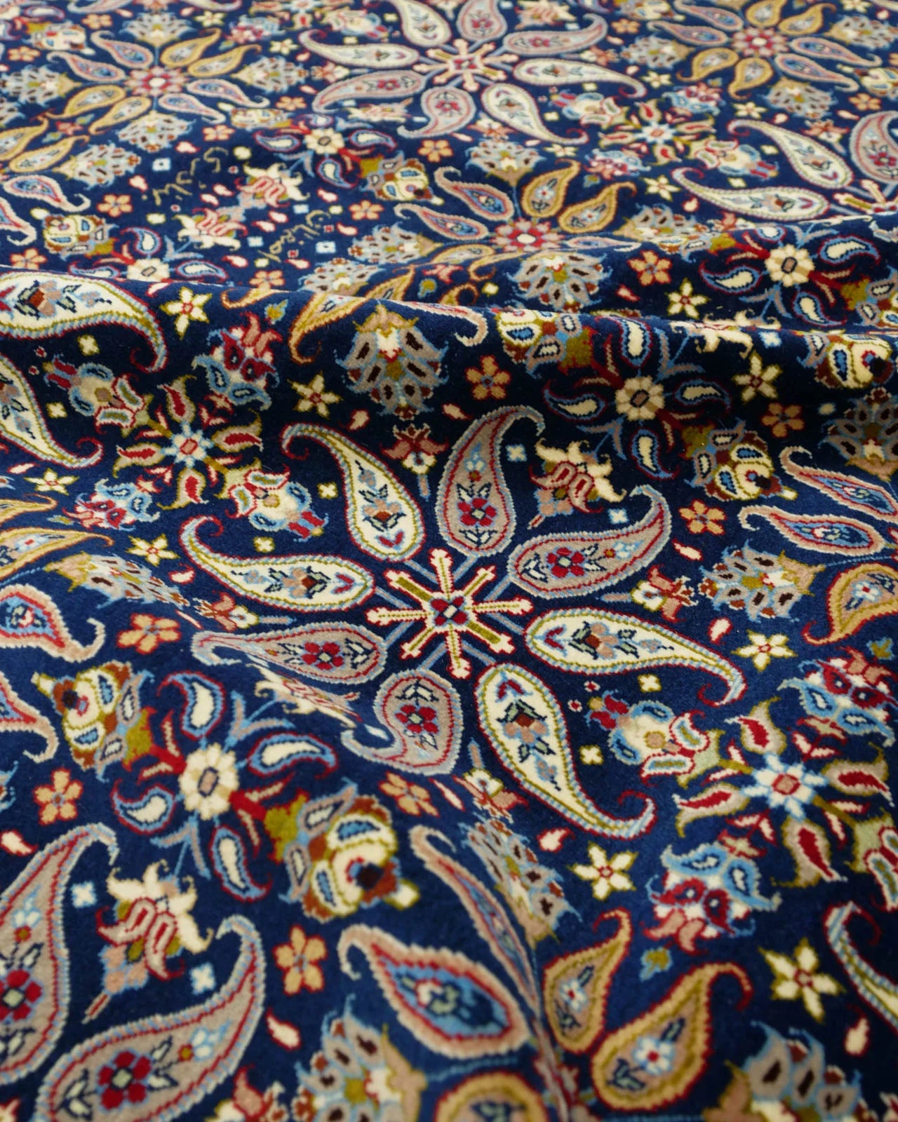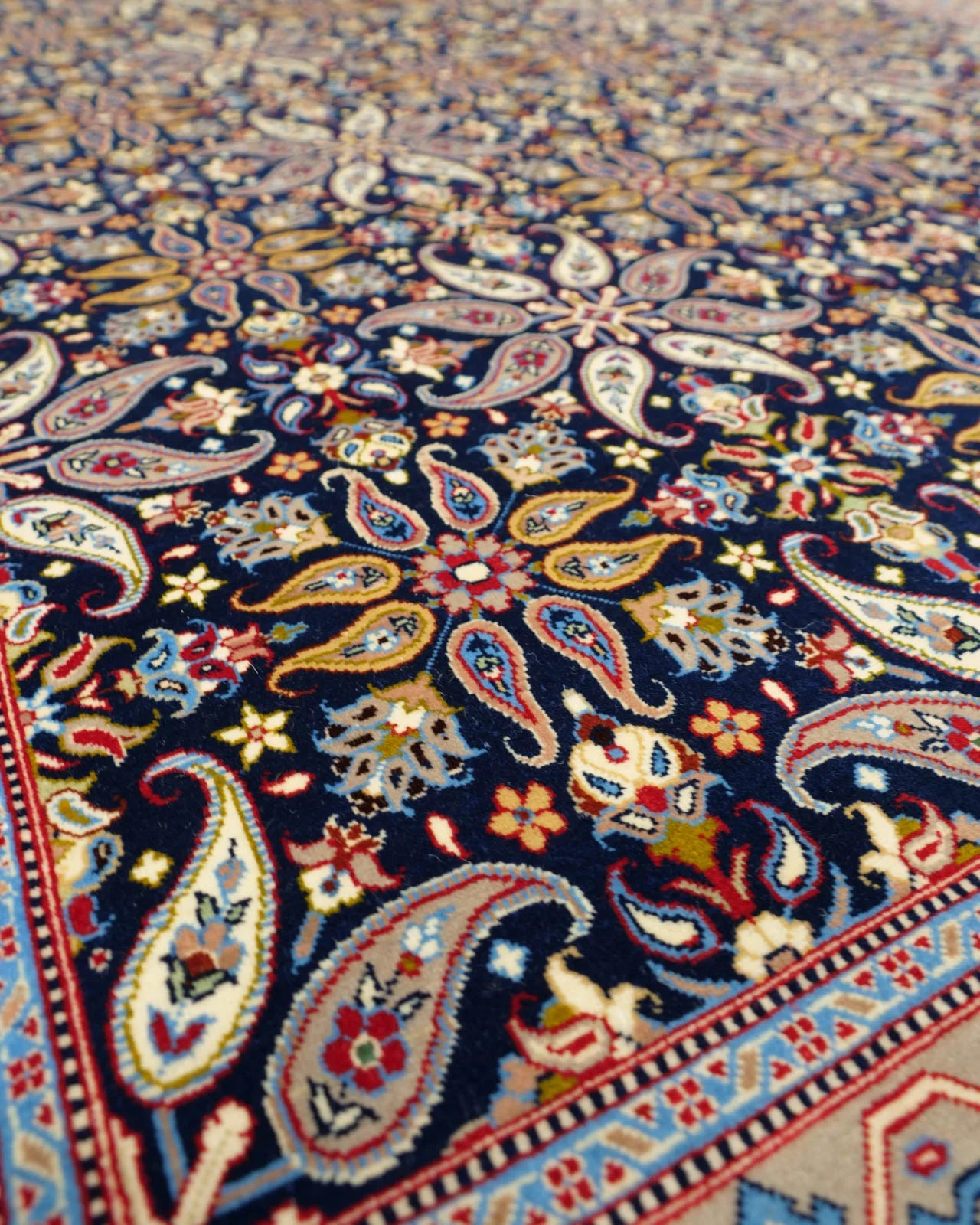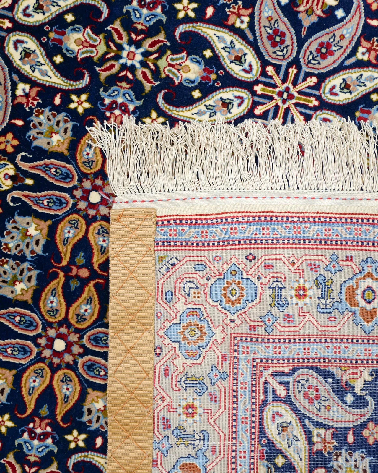 Isfahan rugs are distinguished by their use of "kork wool," a fine and soft wool taken from the neck of young lambs. This high-quality material offers both durability and resistance to dirt. The designs are refined and elegant, with an exceptionally high knot density that enhances the intricate beauty of the patterns. Traditional motifs such as medallions—often inspired by mosque domes—and intricate arabesque (Eslimi) designs are commonly featured, reflecting the deep artistic heritage of Persian craftsmanship.