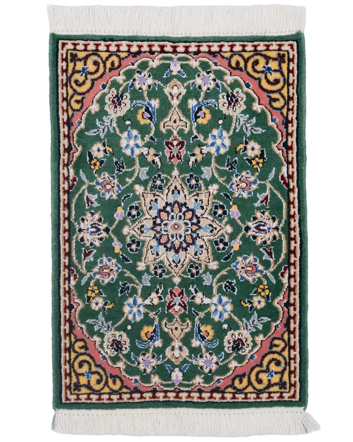 ペルシャ絨毯 ナイン産 40x60cm ウール 緑 玄関マット 手織り