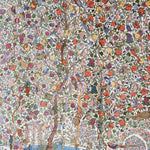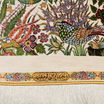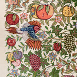 The large tree in the center is covered with pomegranates, grapes, and colorful flowers, and is surrounded by a meticulous depiction of a total of 118 birds.