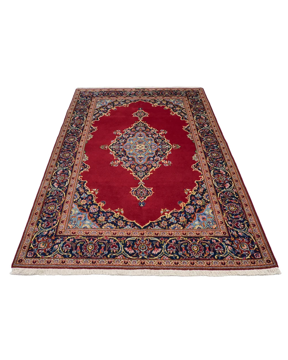 Kashan Persian rugs are known for their classic, elegant, and traditional designs. They often feature rich colors such as deep crimson, navy blue, and ivory, which add a sense of luxury and sophistication to any space. Simply placing one in a room can instantly elevate the décor and create a refined atmosphere.