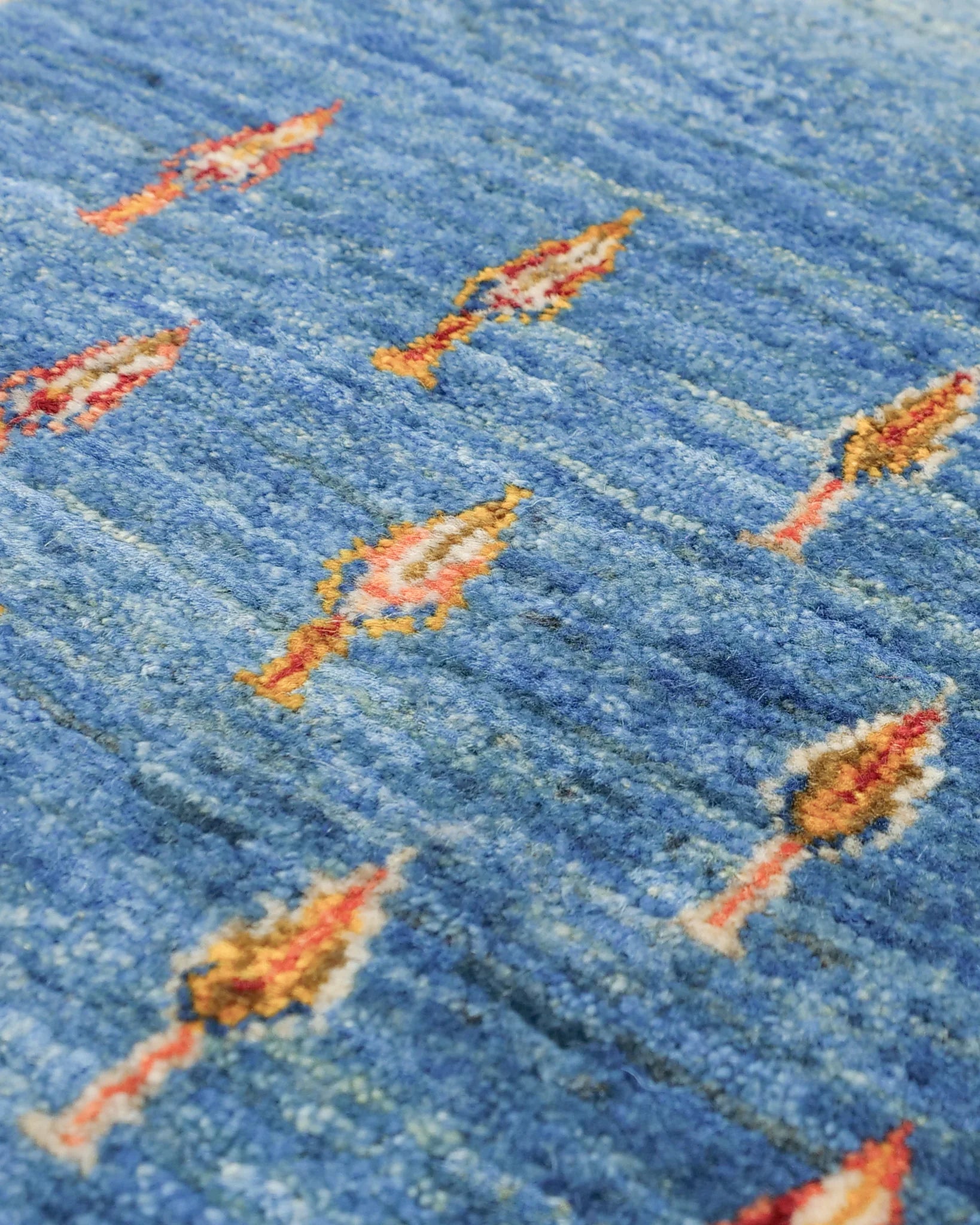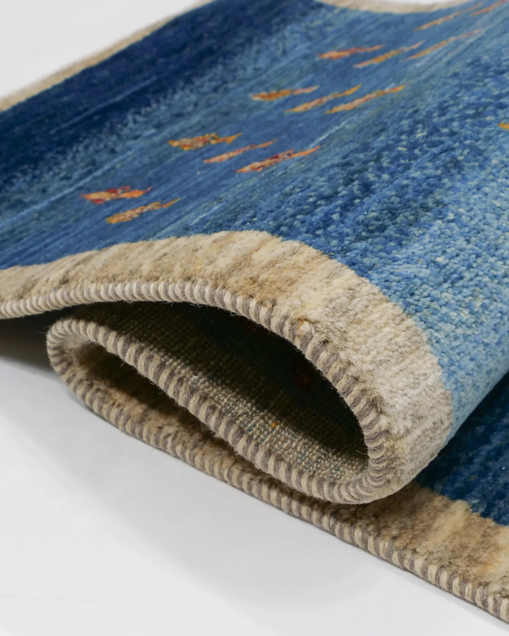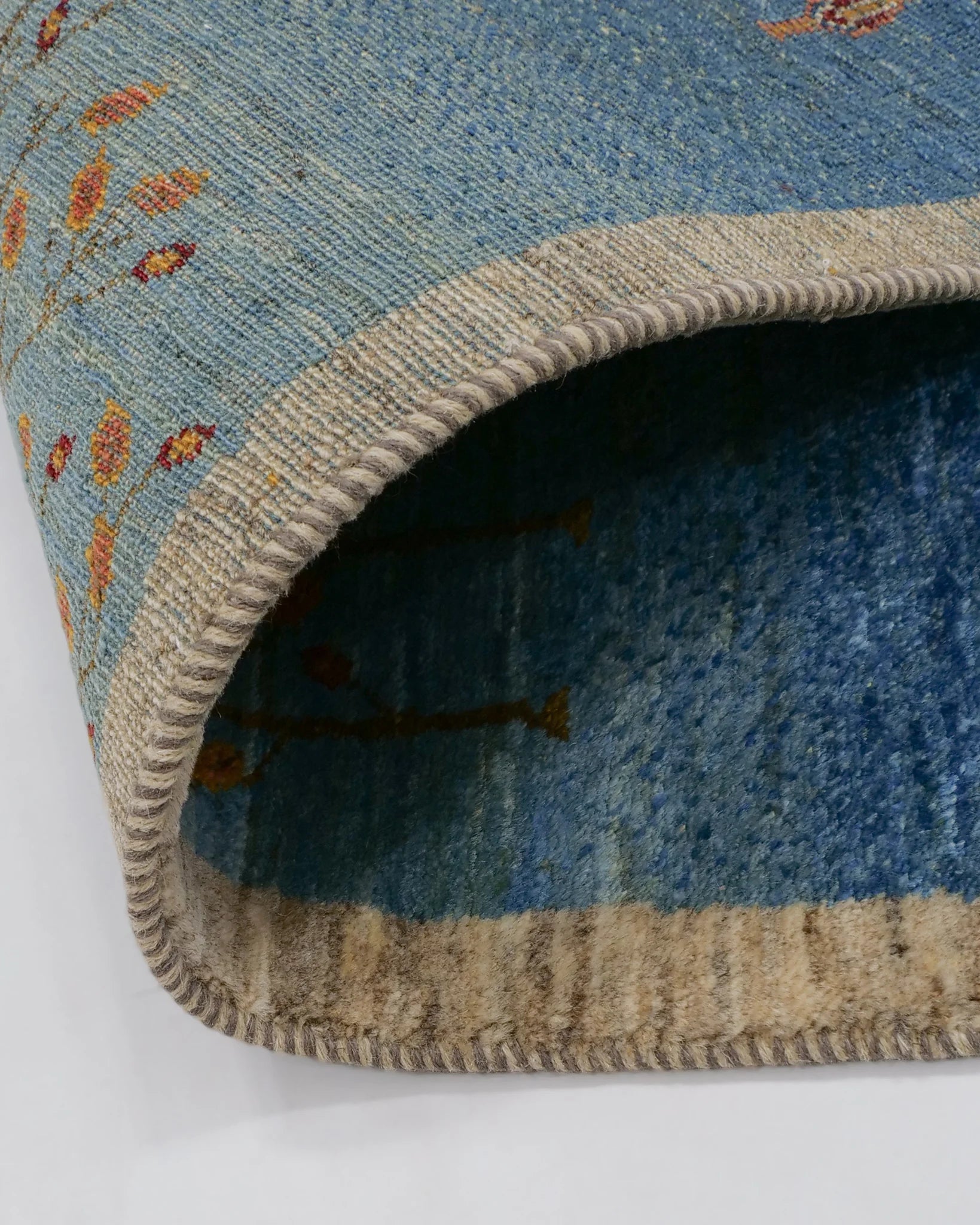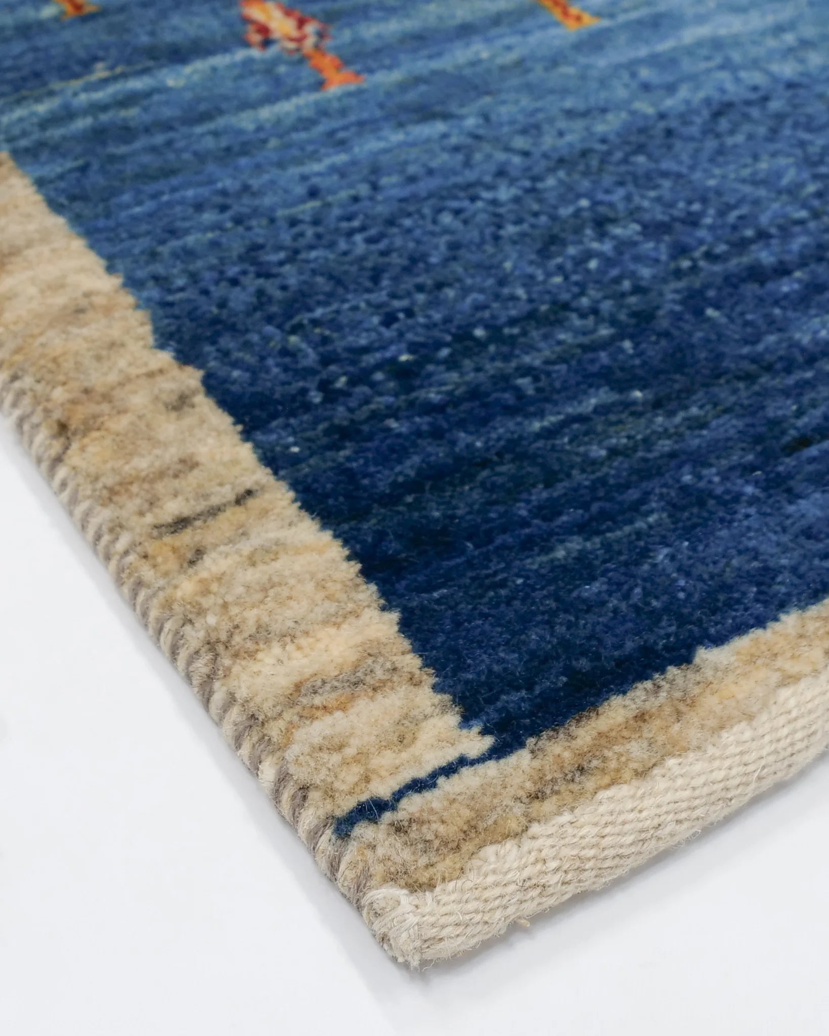 高級ウールを使用したブルーのギャッベラグの織り密度