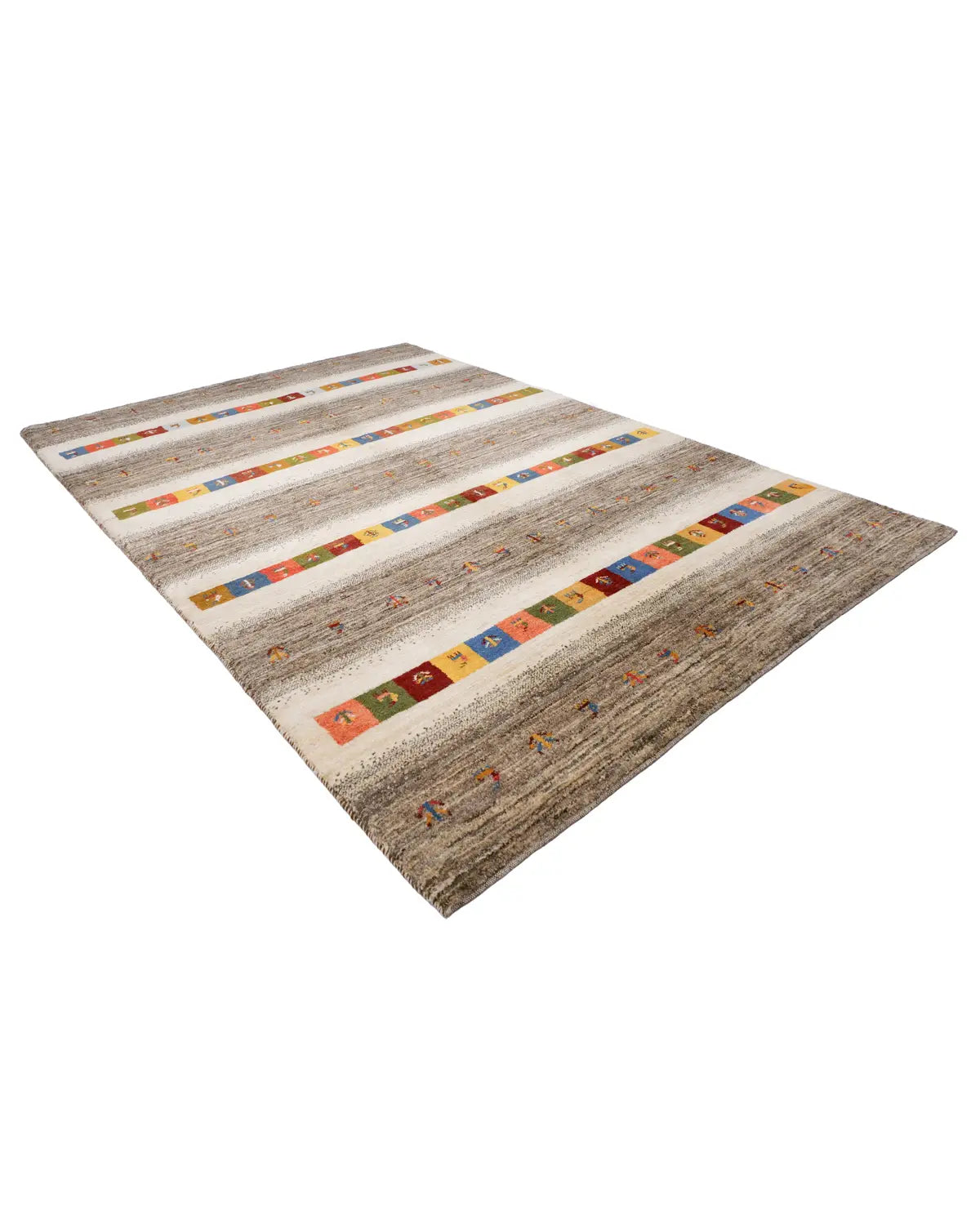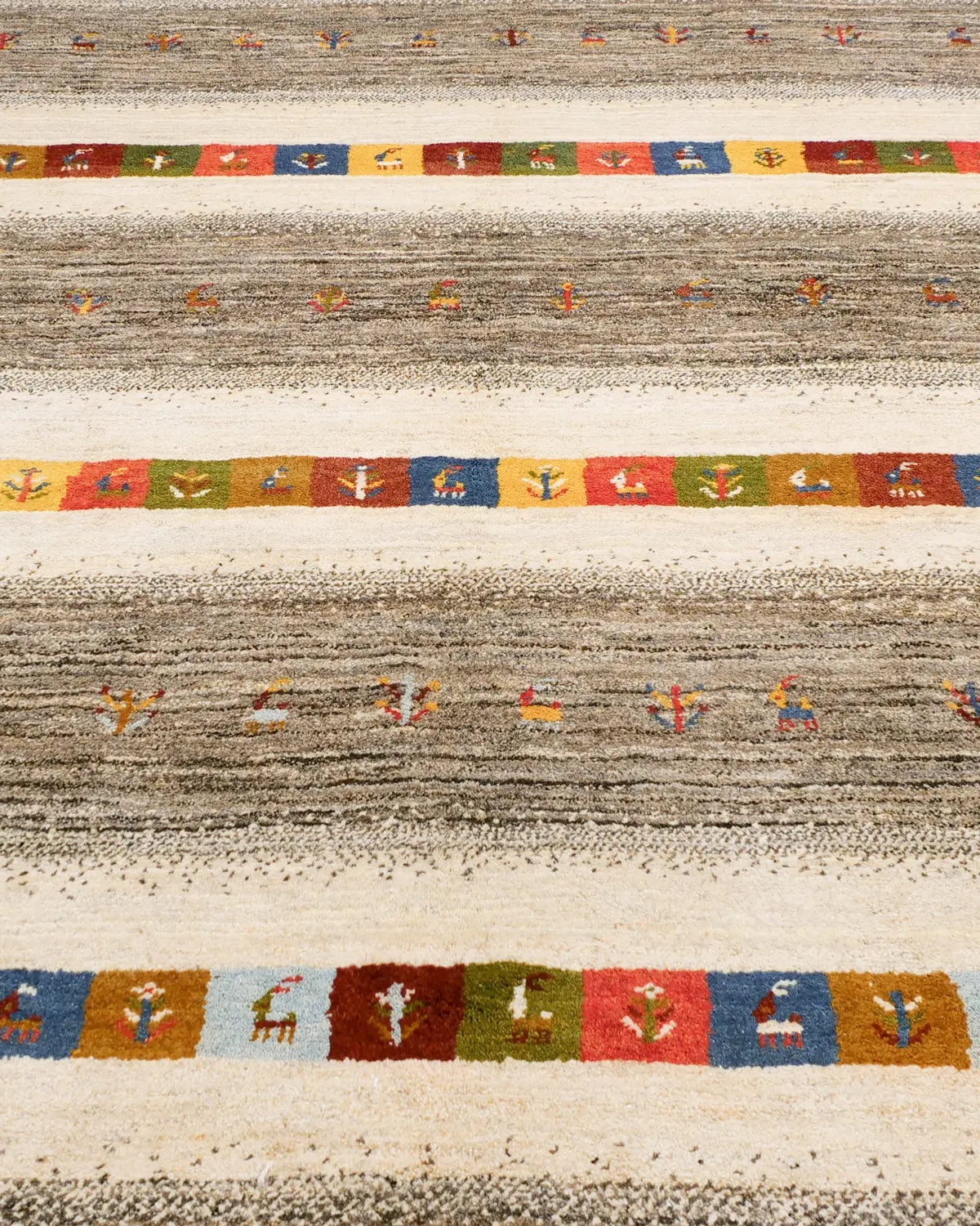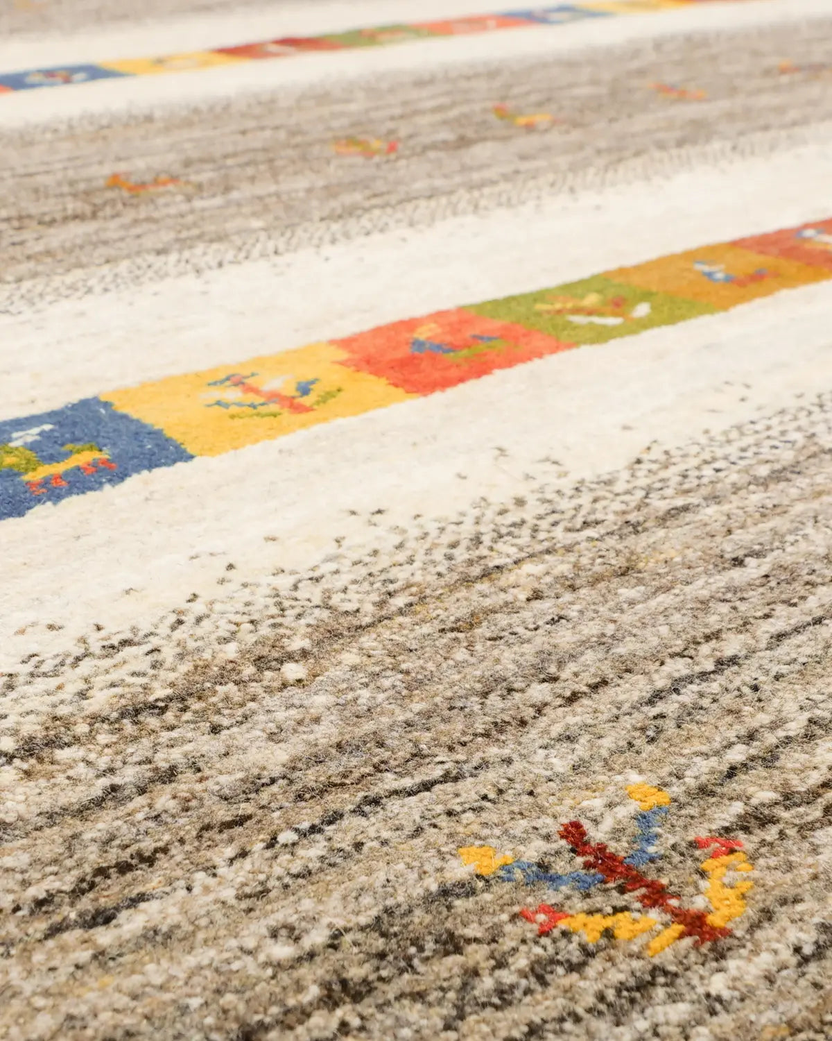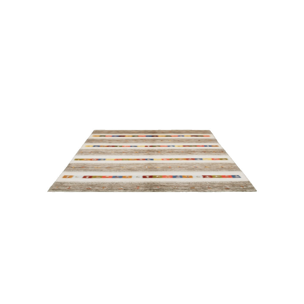 ウール手織りギャッベ ナチュラルカラー ボーダー模様