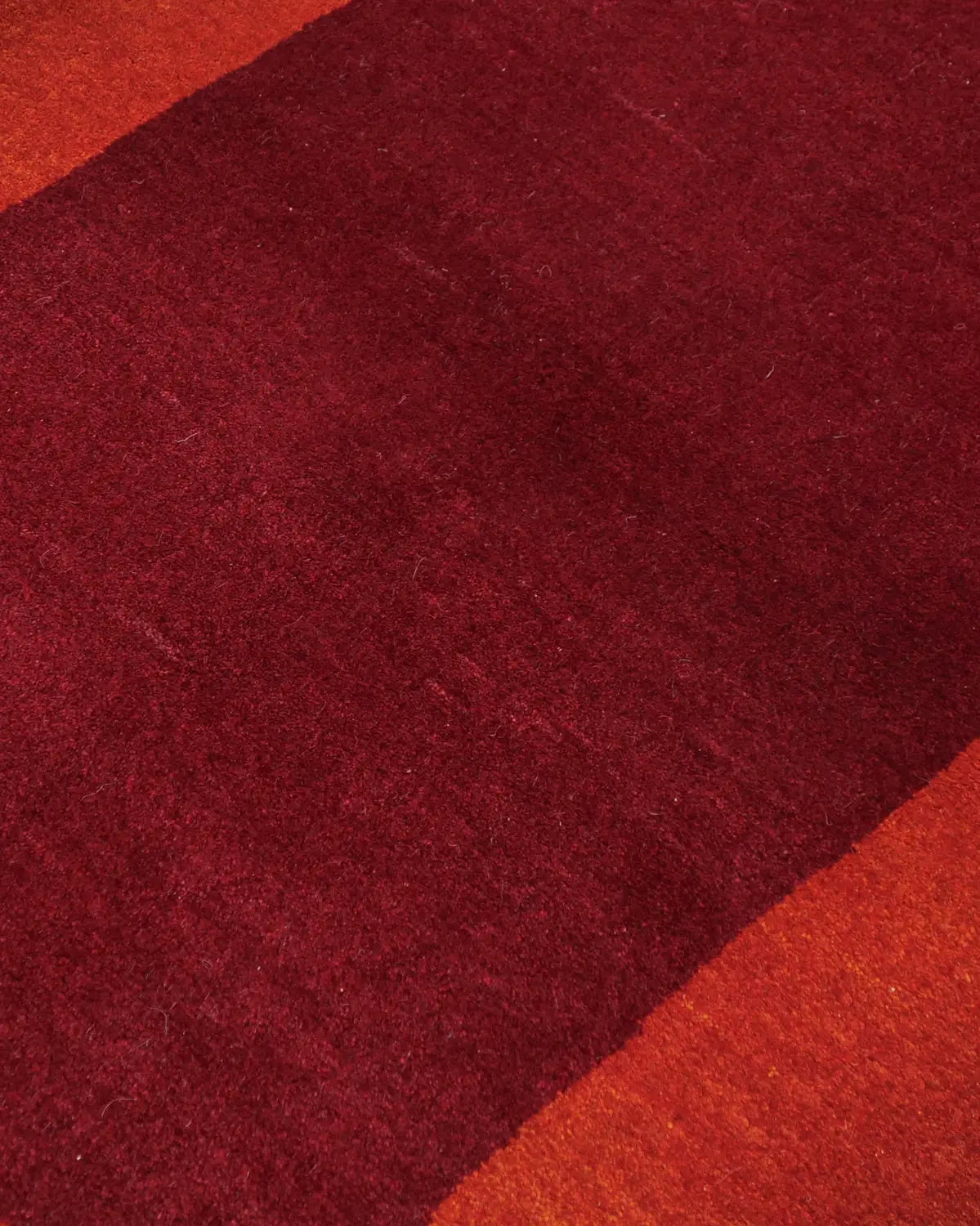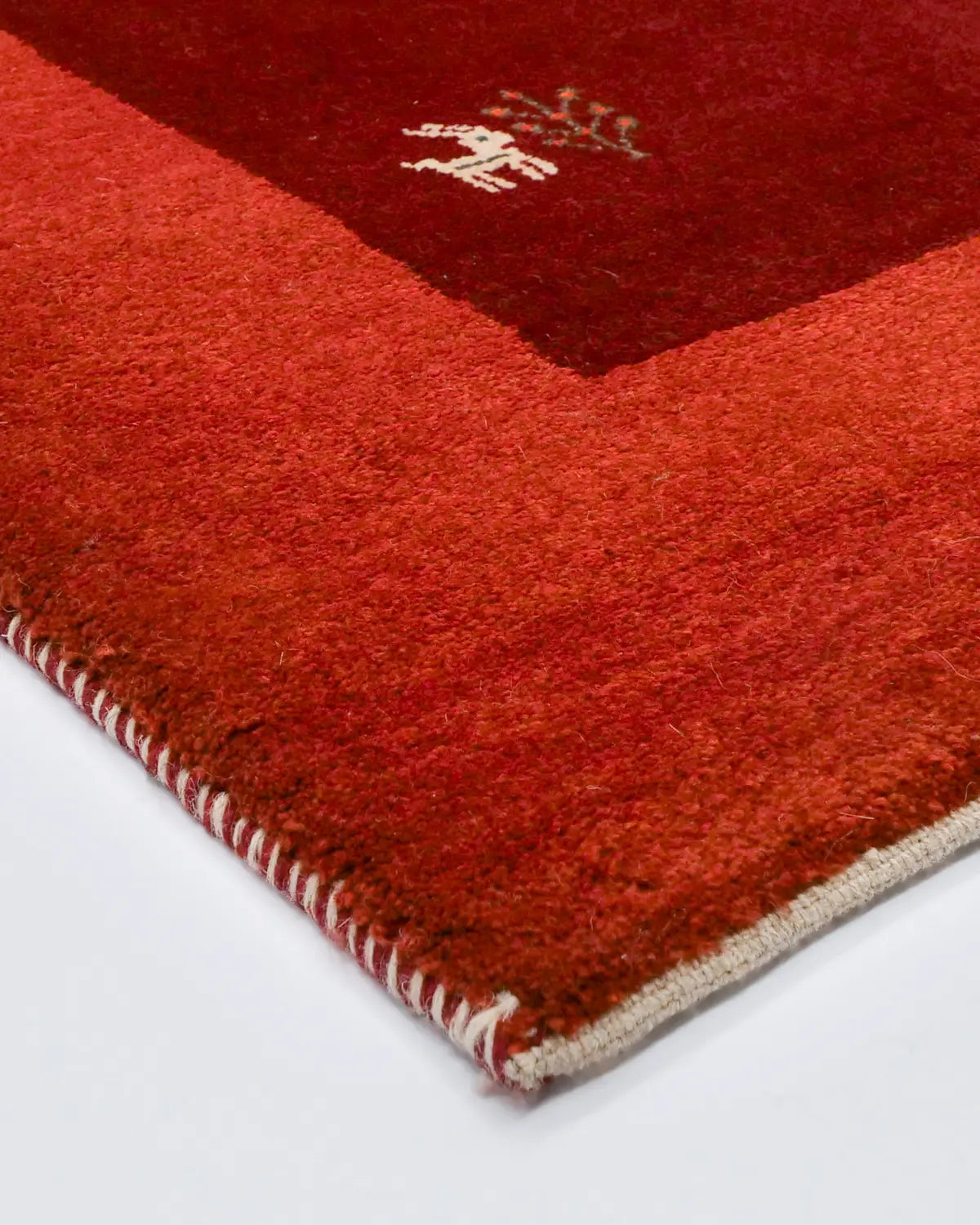 ペルシャギャッベはイラン南西部に住む遊牧民が織る伝統的な絨毯で、厚みがあり、羊を撫でているようなモコモコとした肌触りが特徴です。良質な羊毛を使用しており、柔らかくクッション性に優れ、冬は暖かく夏は涼しいため、1年を通して快適に使用できます。