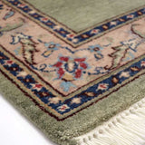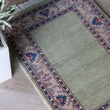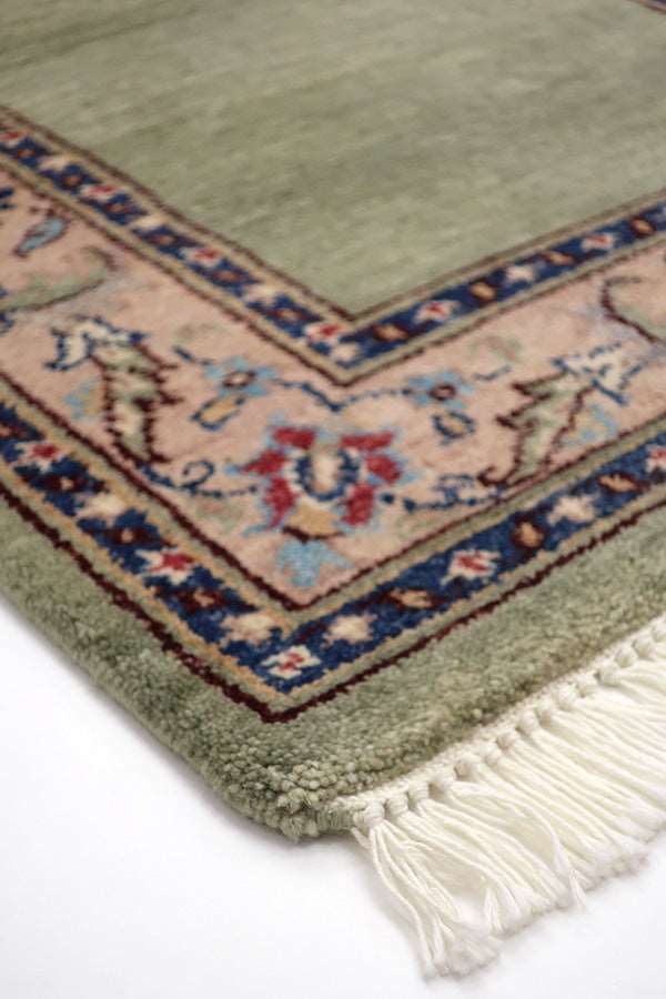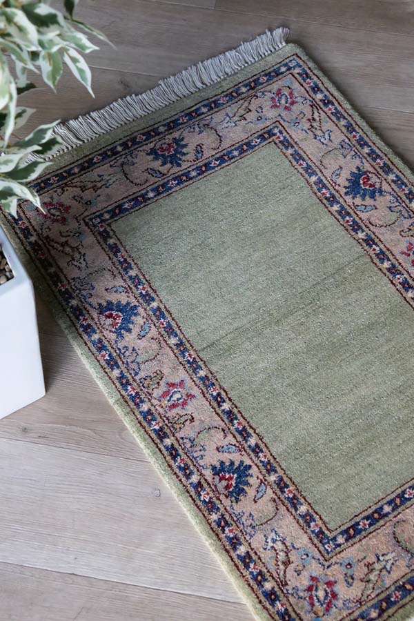 手織り絨毯には順目と逆目といって絨毯の毛流れの向きがあり敷く方向によって色の濃淡の見え方が変わります。濃淡のお色味の変化は写真4,5枚目を比較しご覧ください。