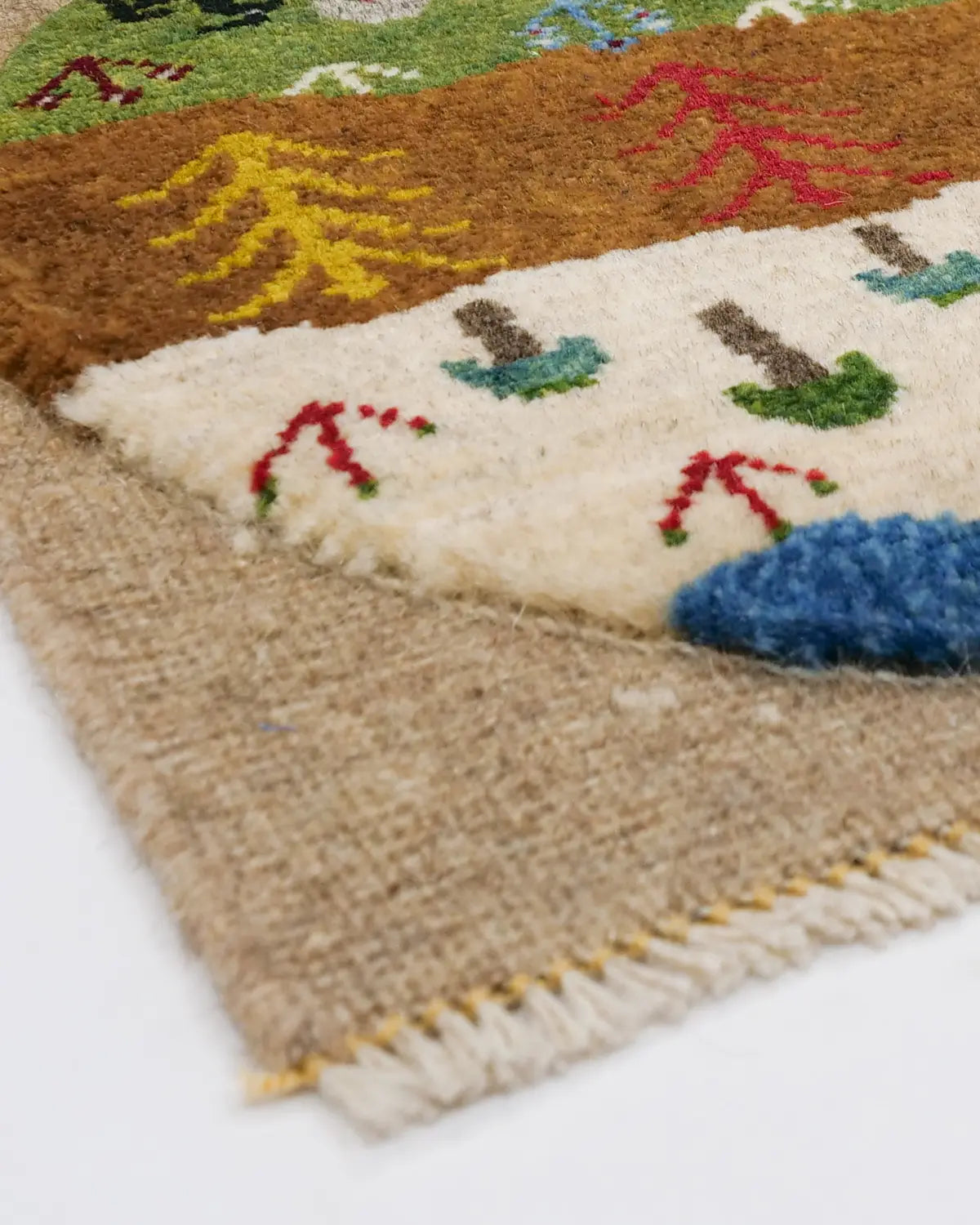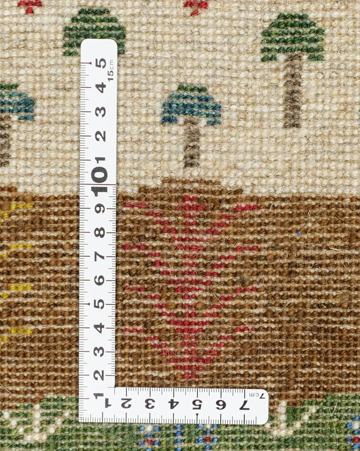 ペルシャギャッベはイラン南西部に住む遊牧民が織る伝統的な絨毯で、厚みがあり、羊を撫でているようなモコモコとした肌触りが特徴です。良質な羊毛を使用しており、柔らかくクッション性に優れ、冬は暖かく夏は涼しいため、1年を通して快適に使用できます。