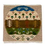 山・木・動物が層になって描かれた、素朴な物語性のあるデザインです。