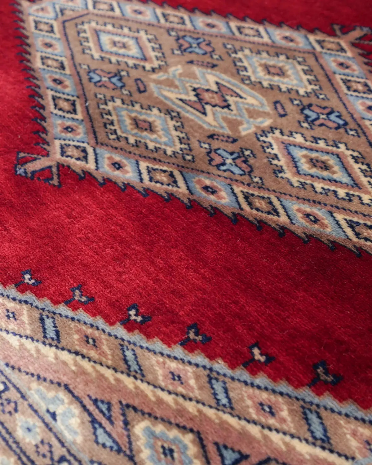 見る角度によってシルクのような美しい光沢を放つ、上質な手織りパキスタン絨毯です。