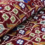 中央フィールドには、深みのあるバーガンディレッドを背景に、つる草と花柄が一面に広がるオールオーバーデザイン。