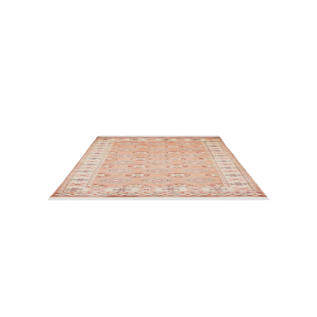 ラホール産ウール手織り絨毯 花のような幾何学模様 リビング用