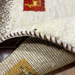 ペルシャギャッベはイラン南西部に住む遊牧民が織る伝統的な絨毯で、厚みがあり、羊を撫でているようなモコモコとした肌触りが特徴です。良質な羊毛を使用しており、柔らかくクッション性に優れ、冬は暖かく夏は涼しいため、1年を通して快適に使用できます。