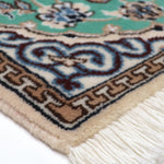 纳因的波斯地毯以柔软的羊毛和丝绸勾勒图案为特色,使其具有立体感。配色方案以米色为基础,并带有蓝色、绿色和象牙色等多种令人平静的颜色,非常适合日本家庭。