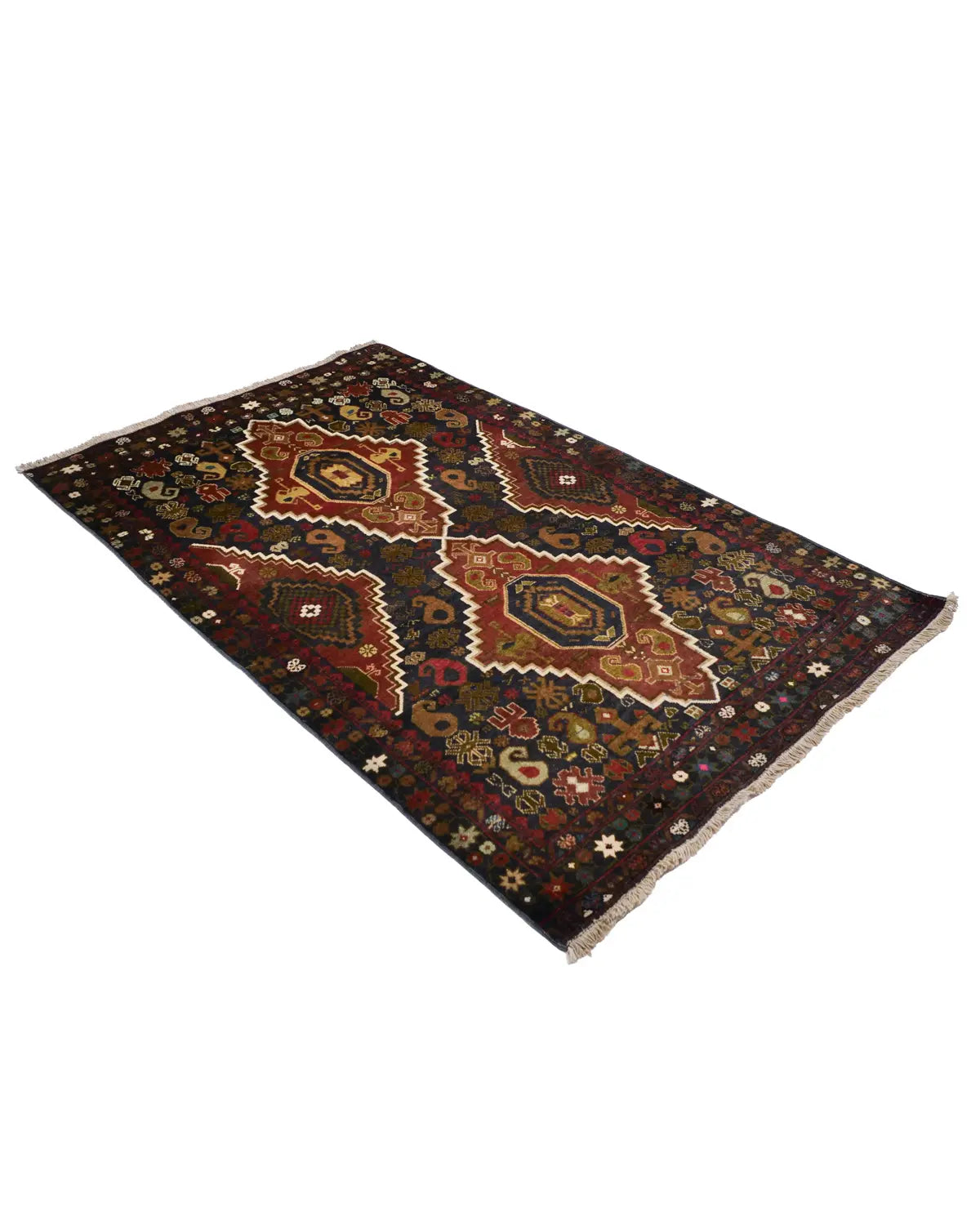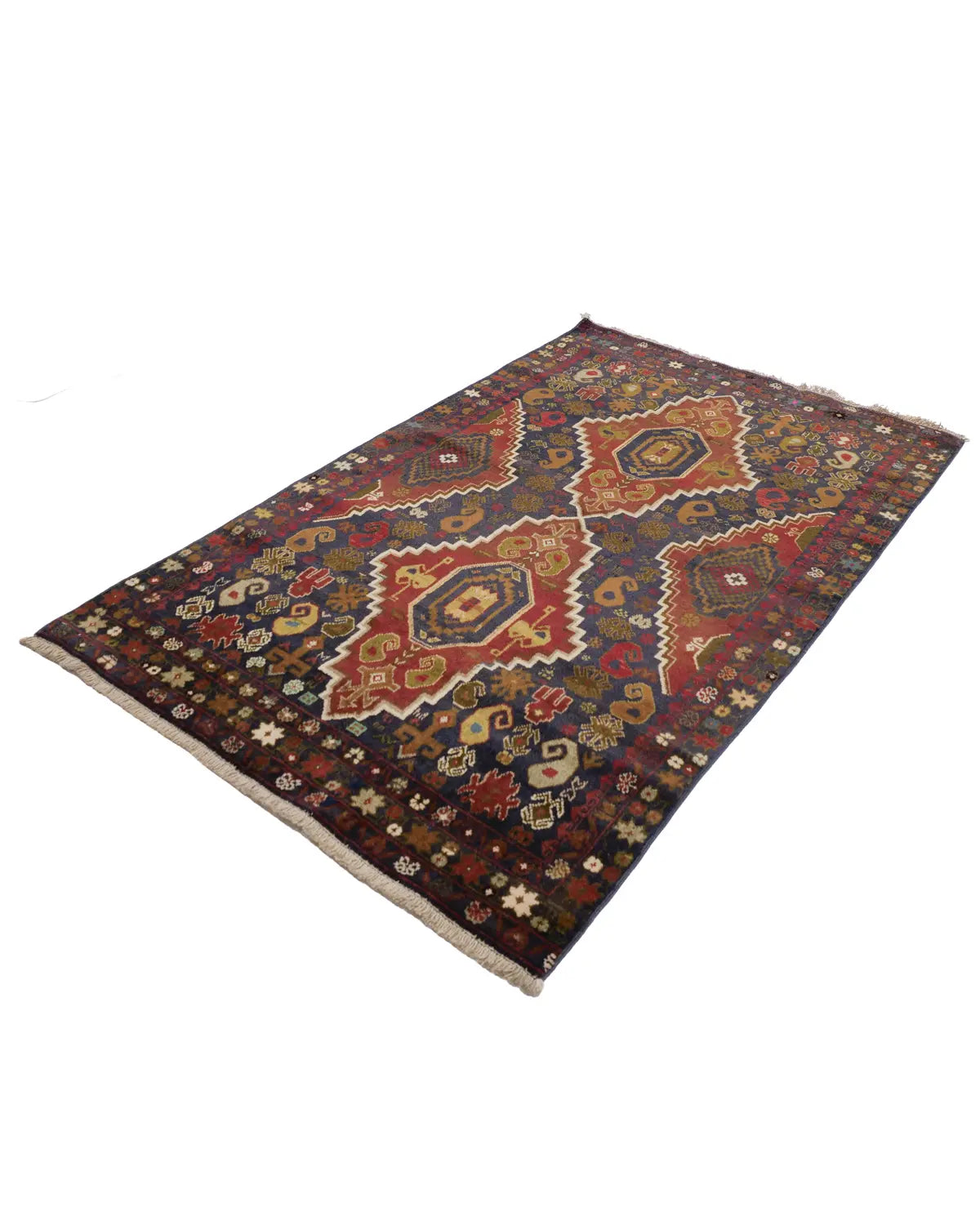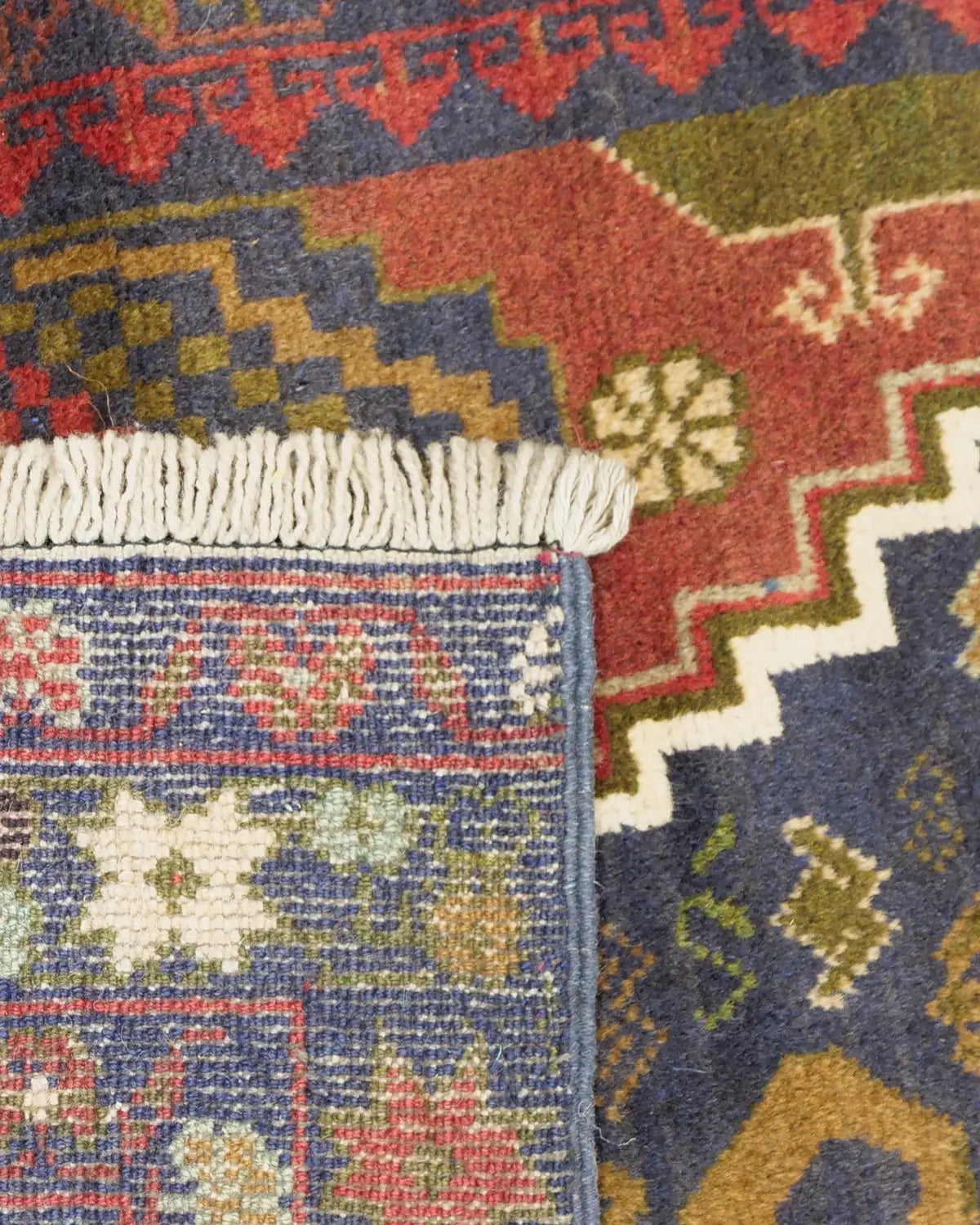 This is a tribal rug woven by the Baluchi people of Afghanistan.