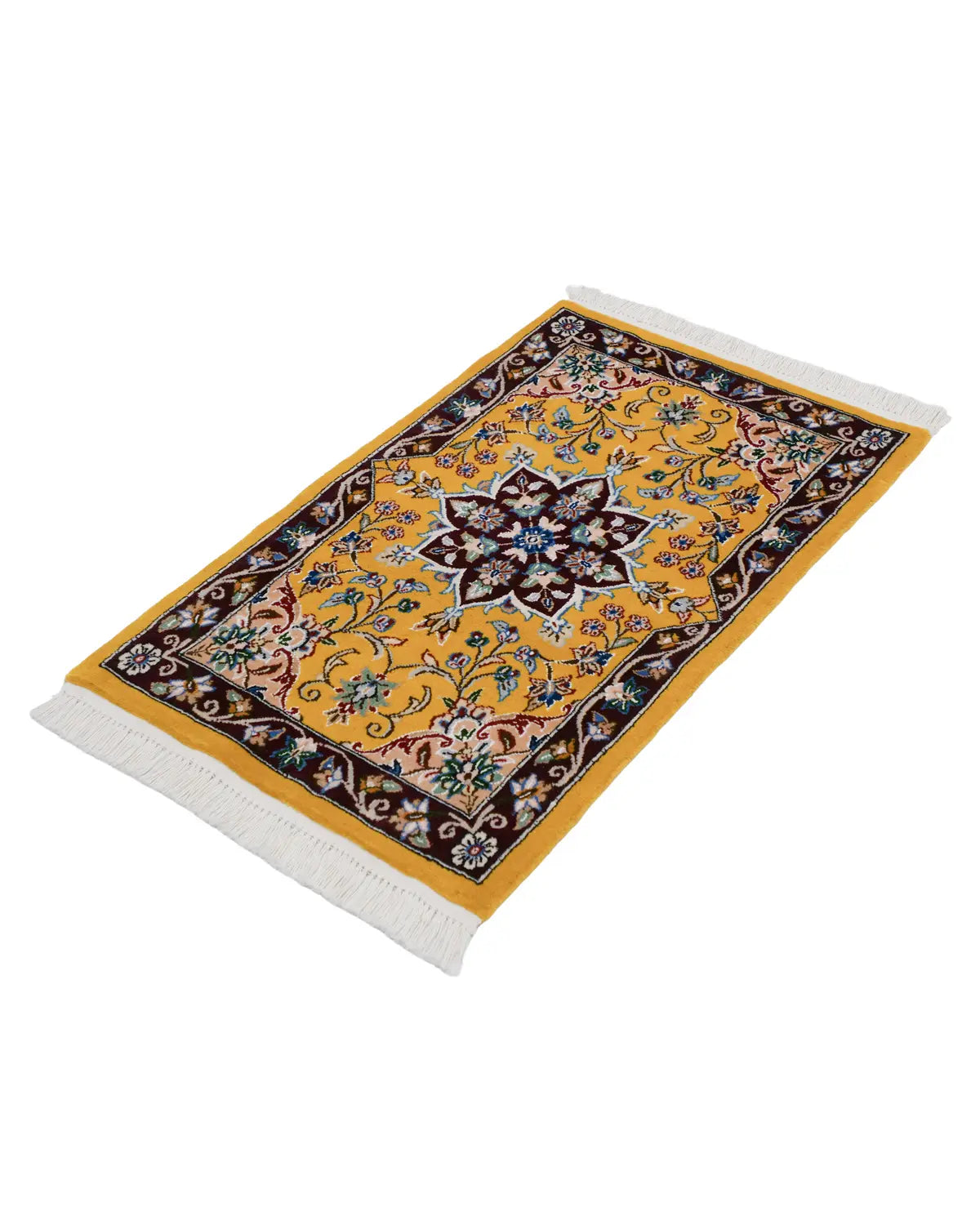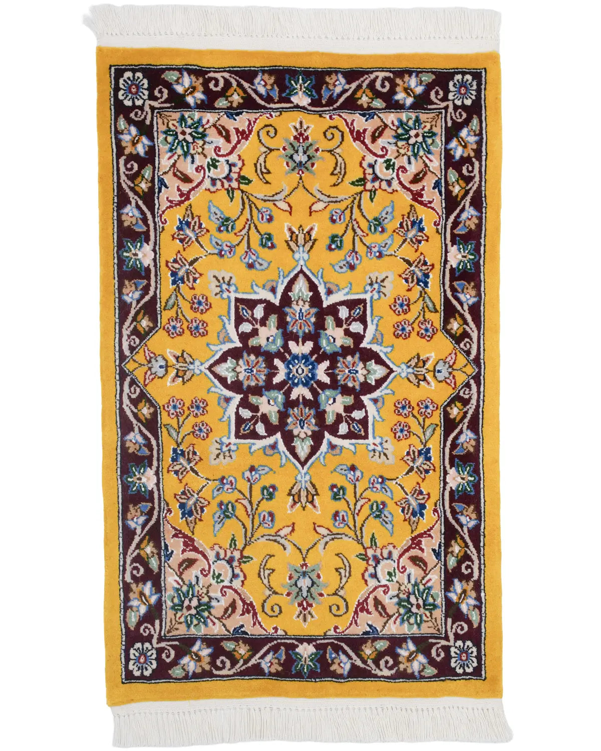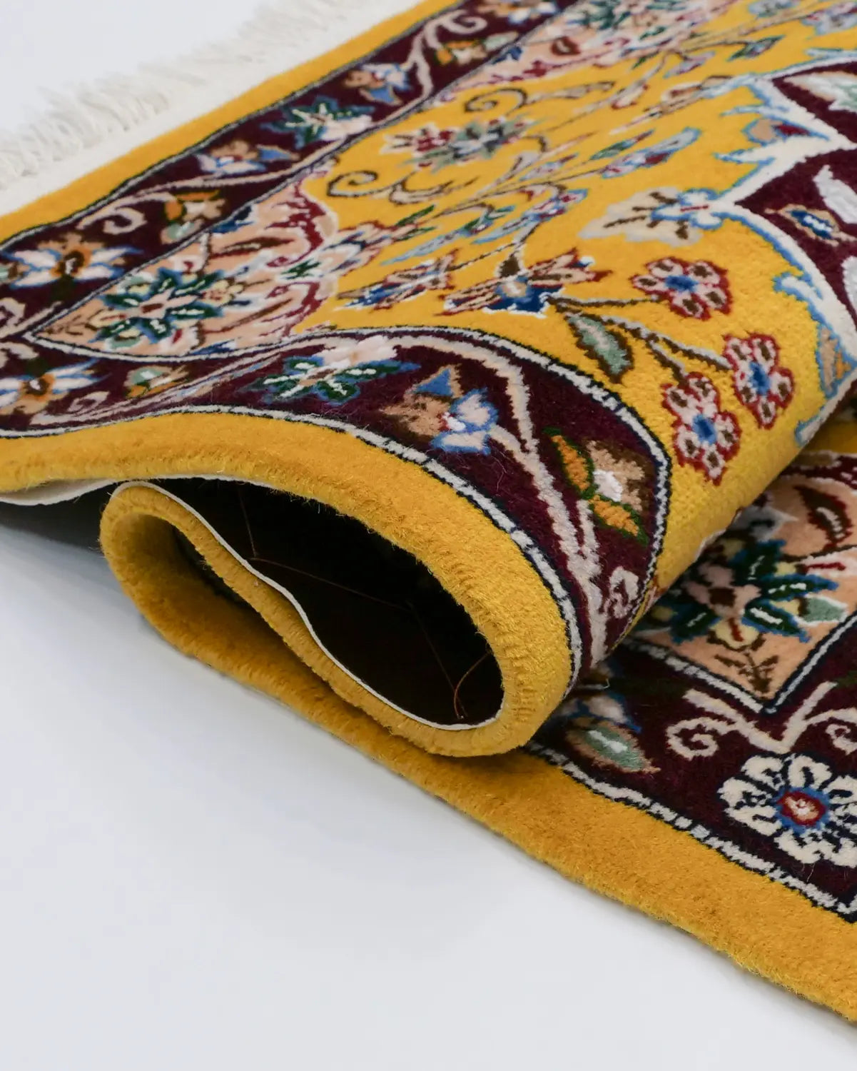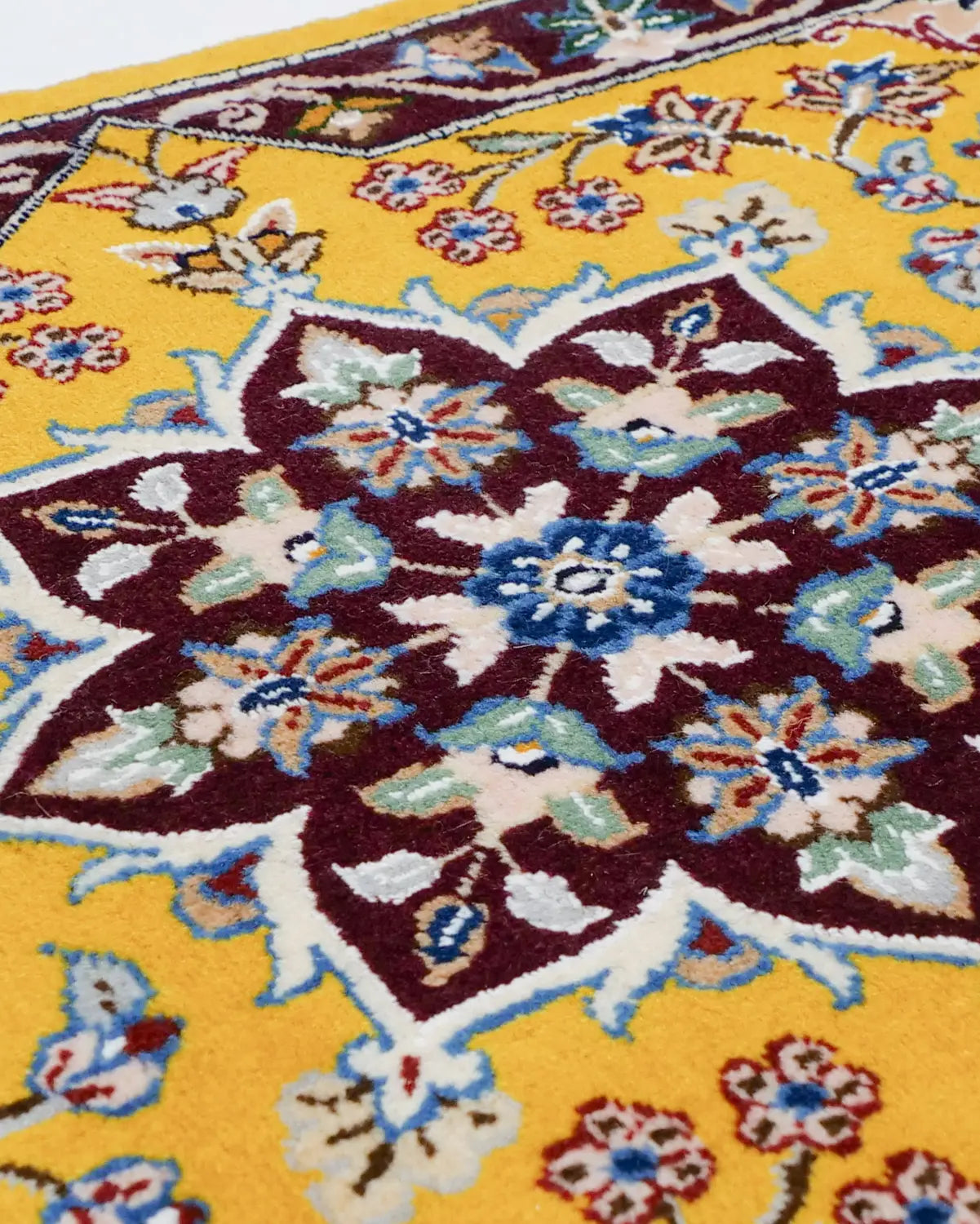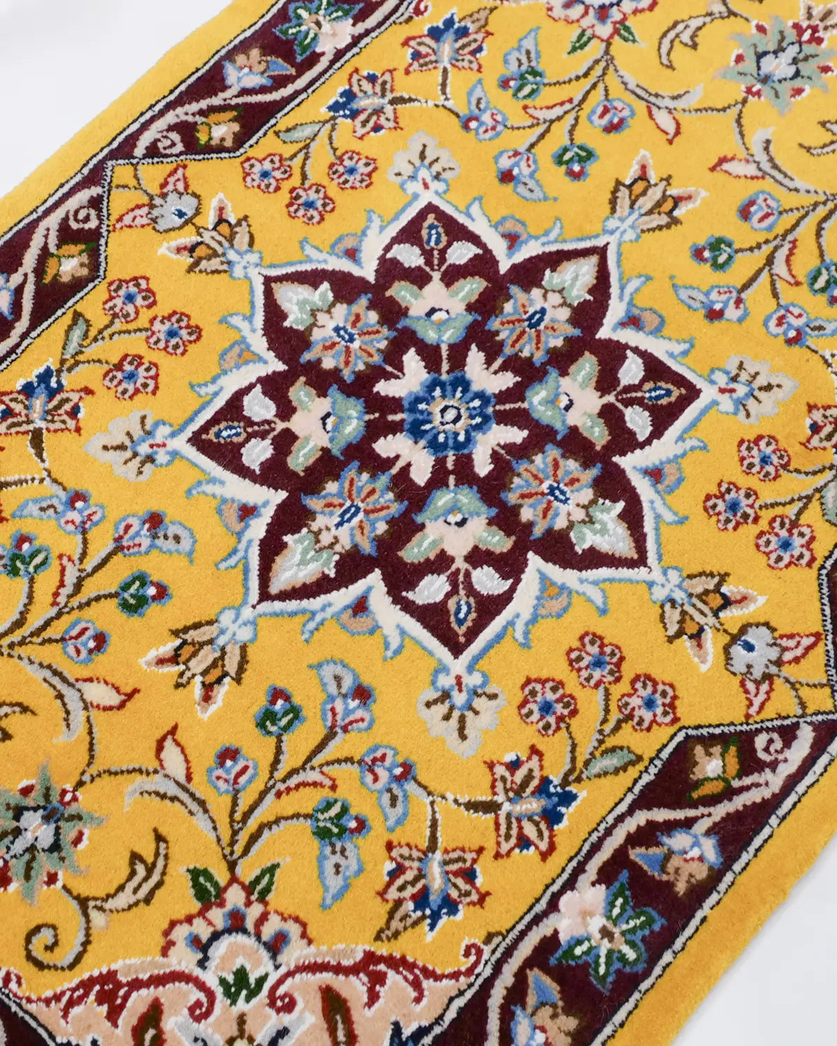 ペルシャ絨毯 ナイン 50x80cm ウール 山吹色 黄色 玄関マット 手織り