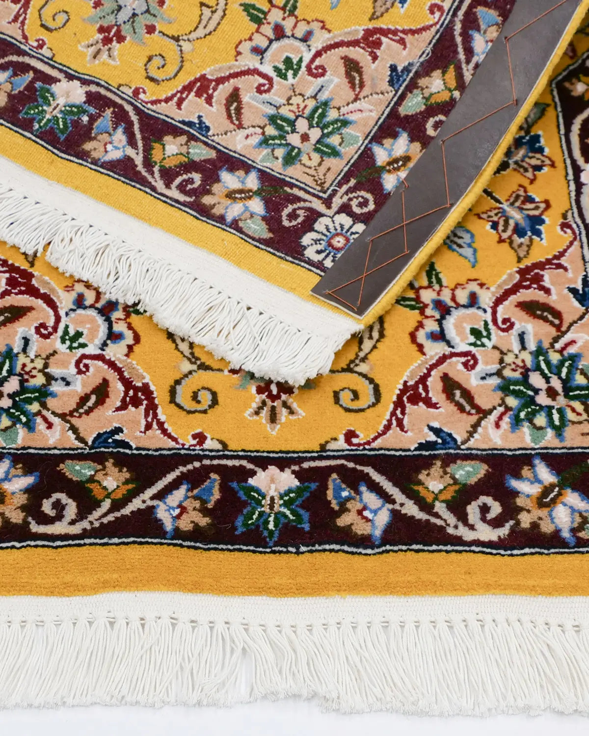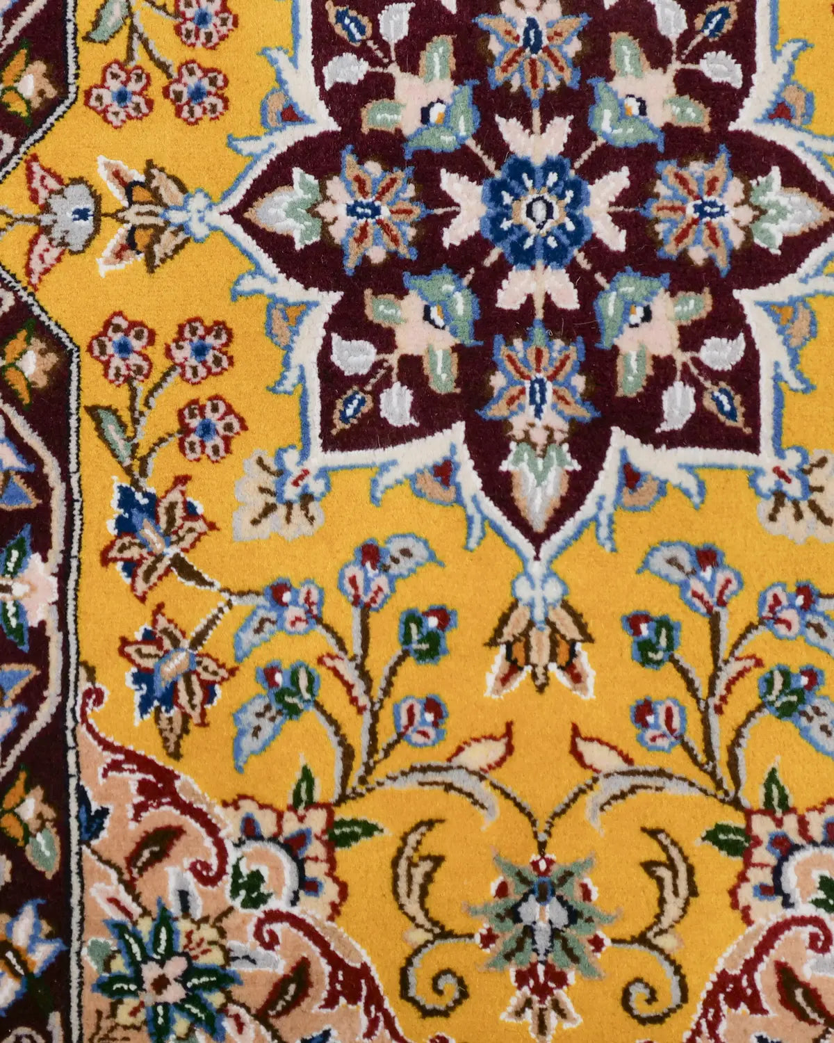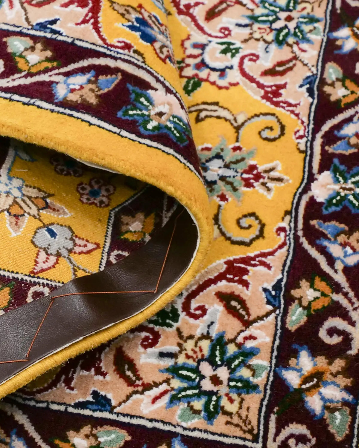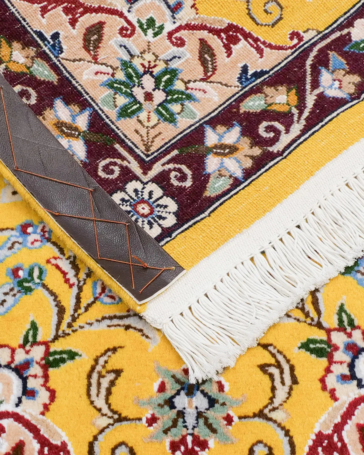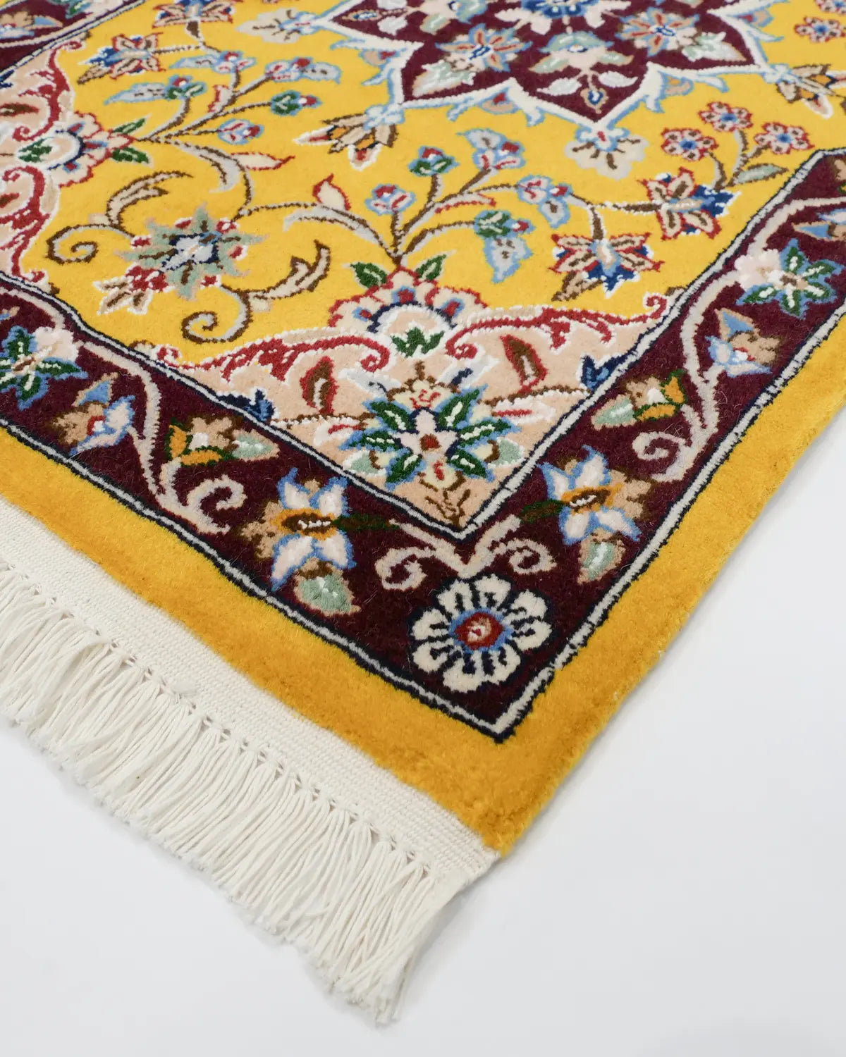 ペルシャ絨毯 ナイン 50x80cm ウール 山吹色 黄色 玄関マット 手織り